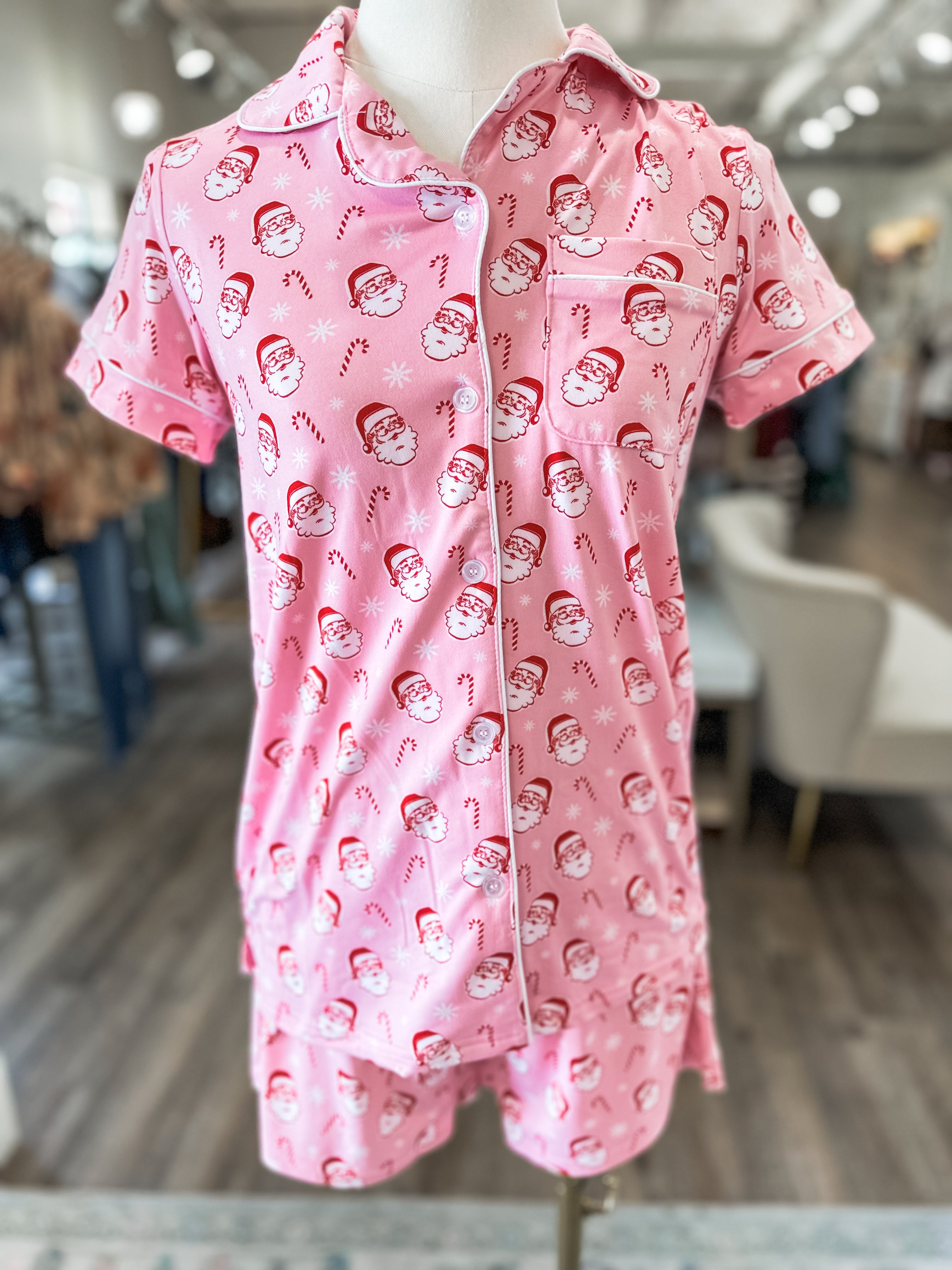 Stay cute and cozy this holiday season with these festive pink sleep shorts covered in candy cane cheer. Perfect for lounging or pairing with your favorite tee for a cozy night in.