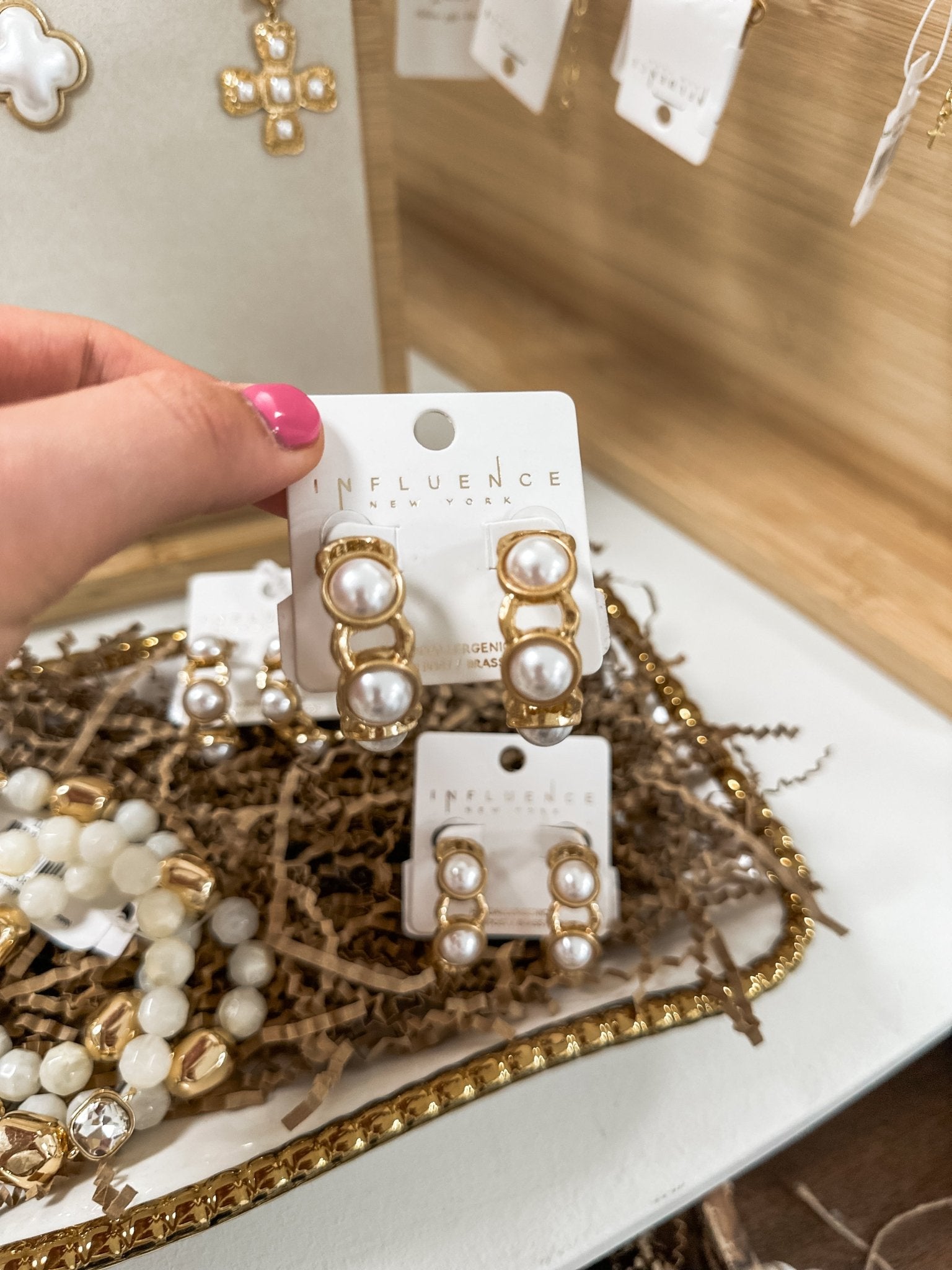 Classic with a modern twist—these hammered gold hoops are finished with dainty pearl accents for an effortlessly chic look. Lightweight yet statement-making, they’re perfect for elevating everyday outfits or adding polish to dressy styles.