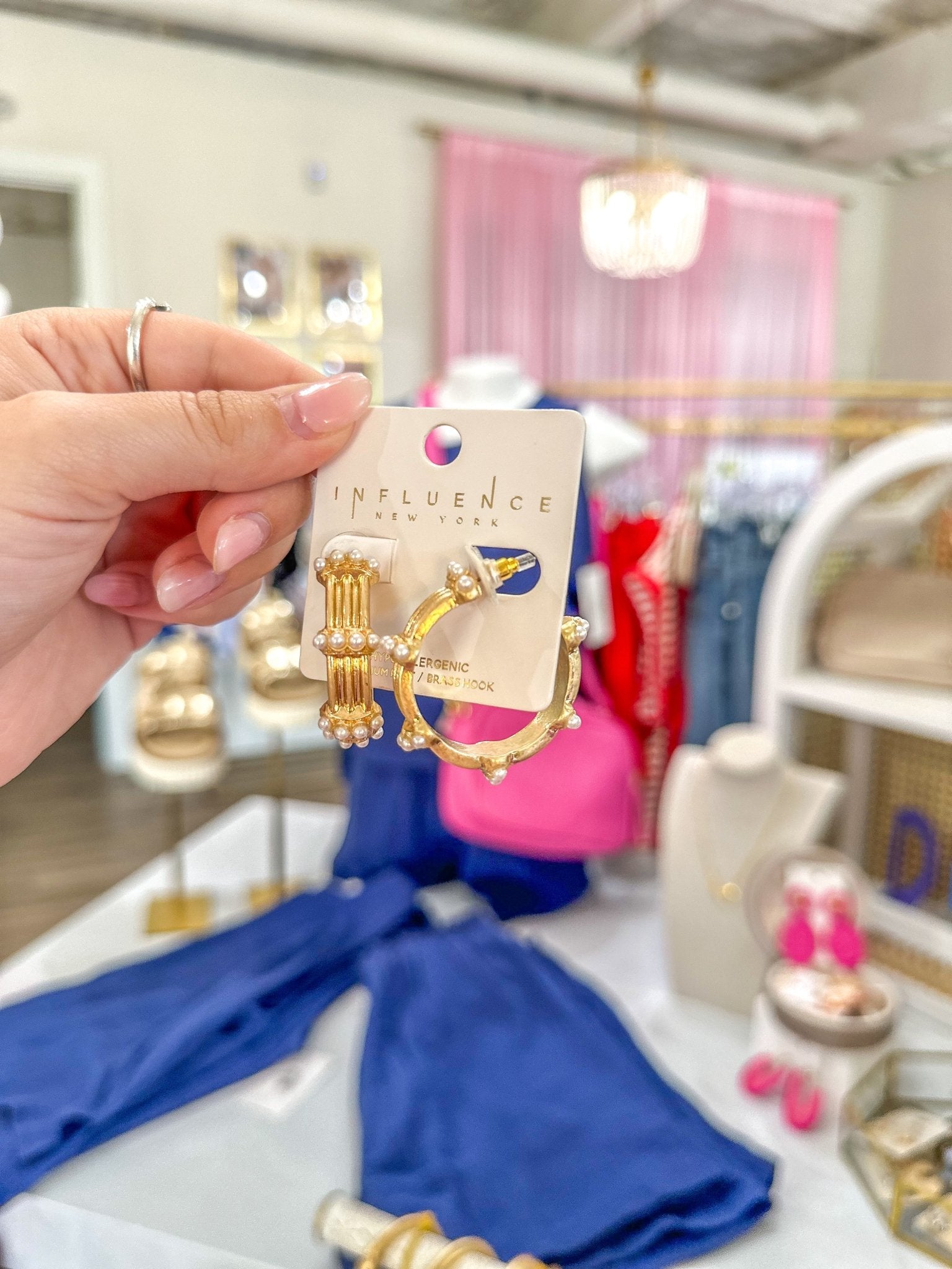Add a touch of royal charm to your look with these Golden Crown Pearl Hoop Earrings. Featuring lustrous pearls nestled in gleaming golden hoops, they bring a playful yet elegant vibe to any outfit. Perfect for turning everyday moments into a celebration of style and sparkle.