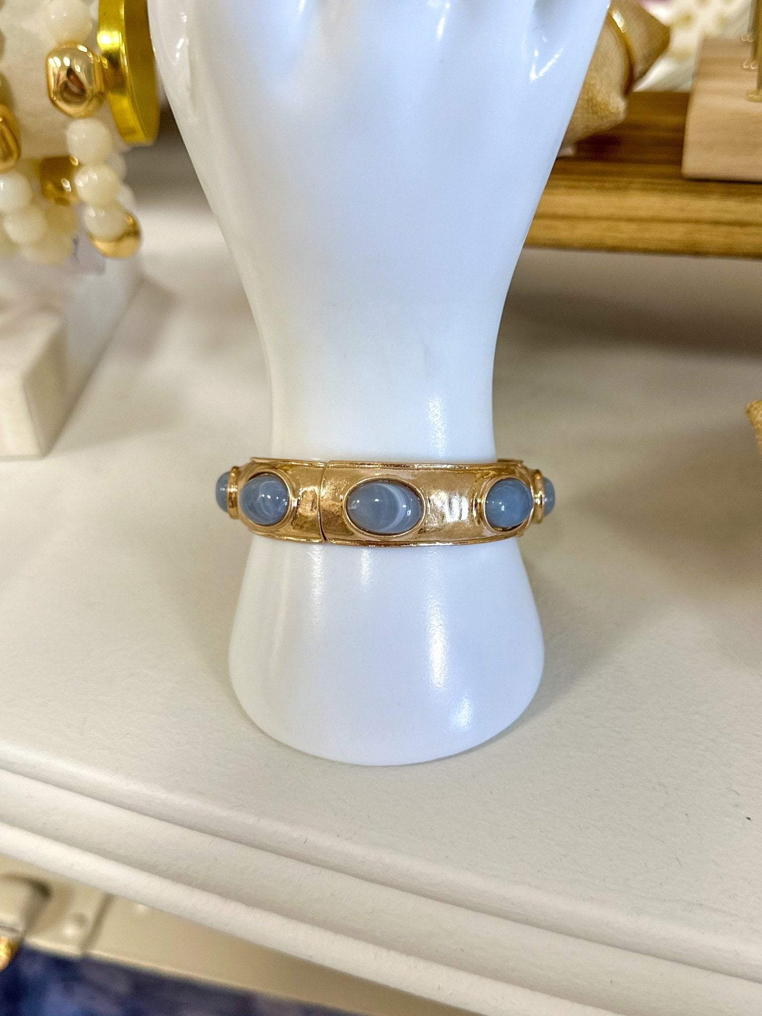 Hammered Gold W/ Grey Natural Stone Oval Accents Bracelet