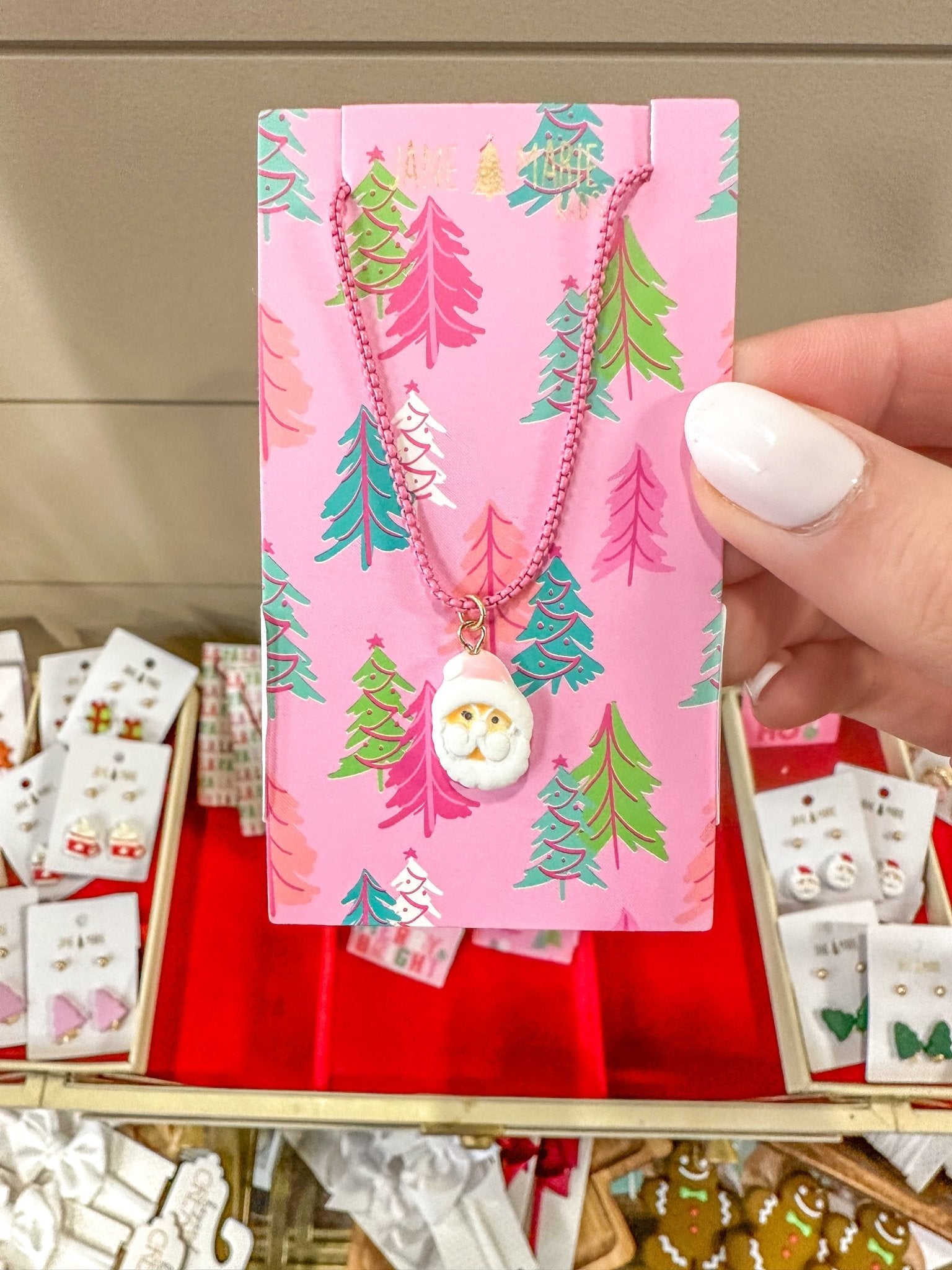 Add a splash of festive fun with the Kids JM Pink Hat Santa Necklace! This charming accessory features a playful Santa wearing a bright pink hat, perfect for spreading holiday cheer. Lightweight and kid-friendly, it’s an ideal gift to brighten up any little one’s holiday outfit with a touch of whimsy and joy.