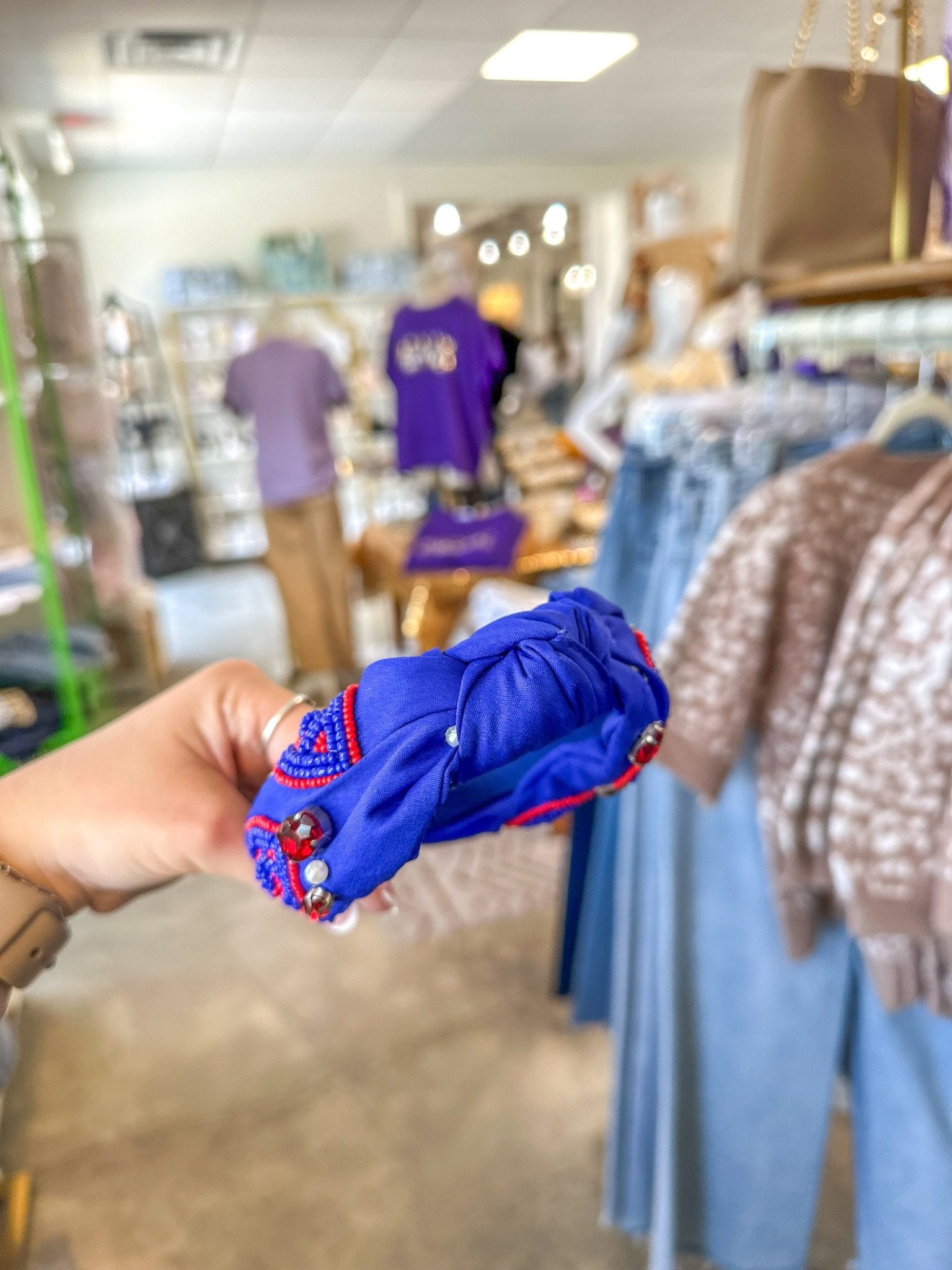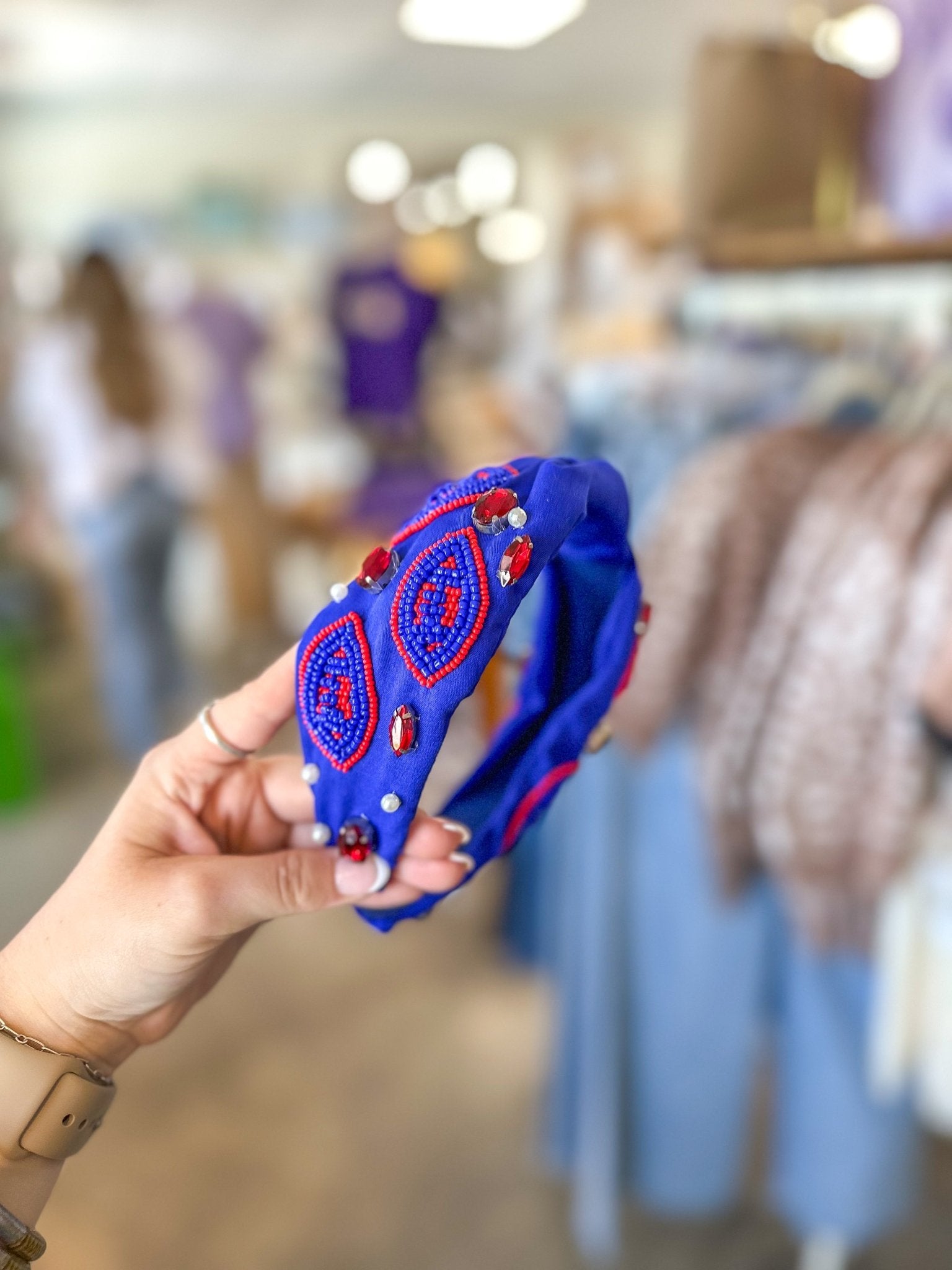 Whether you're leading the league or just here for the snacks, this headband is a total touchdown. 🏈❤️💙