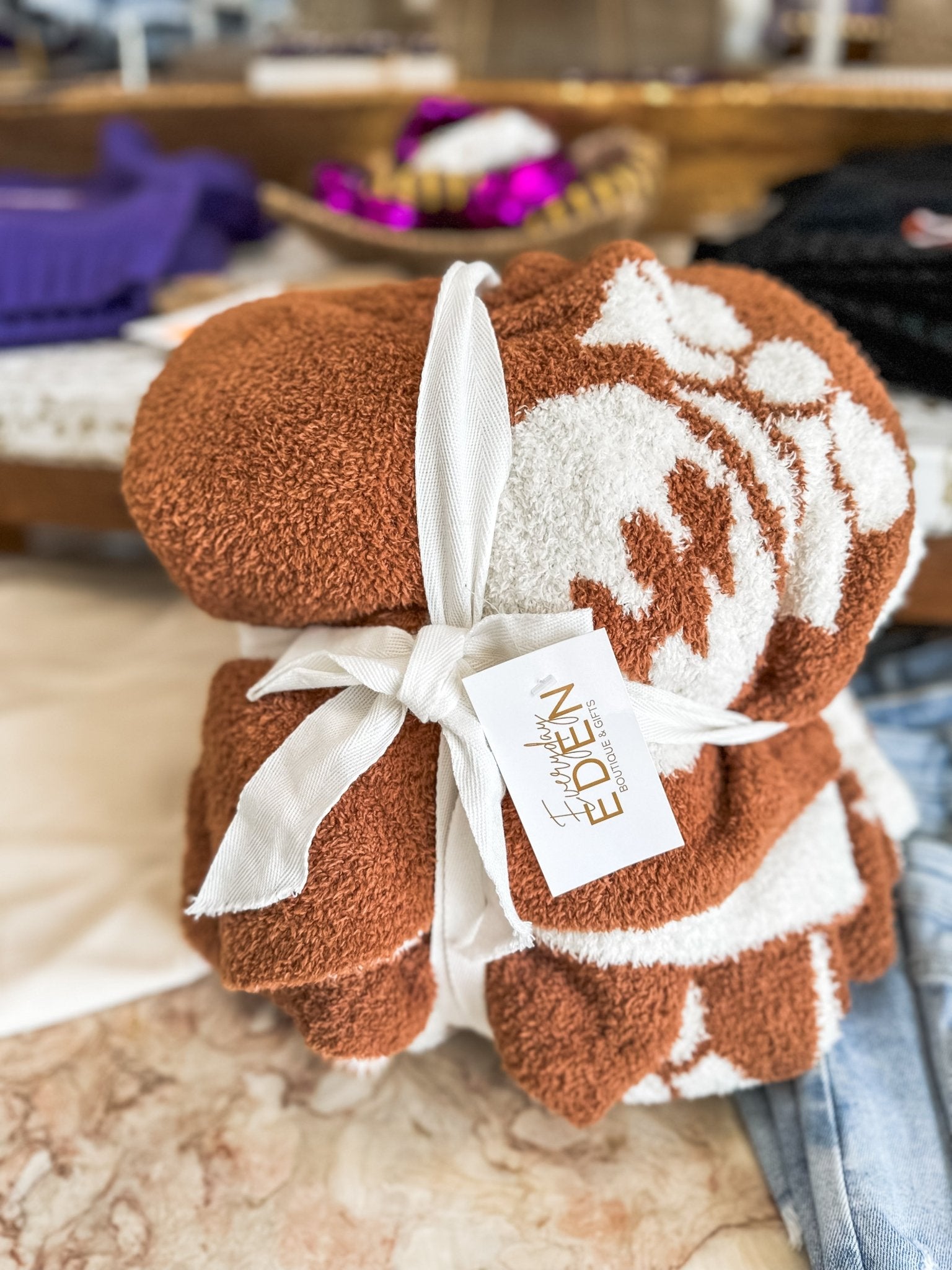 Wrap yourself in cozy fun with our Super Soft Football Bow Print Blanket. Perfect for game day or snuggling up anytime, this plush blanket features a charming football bow pattern that adds a playful touch to your space. Soft to the touch and warm to the core, it’s your new favorite companion for comfort and style.