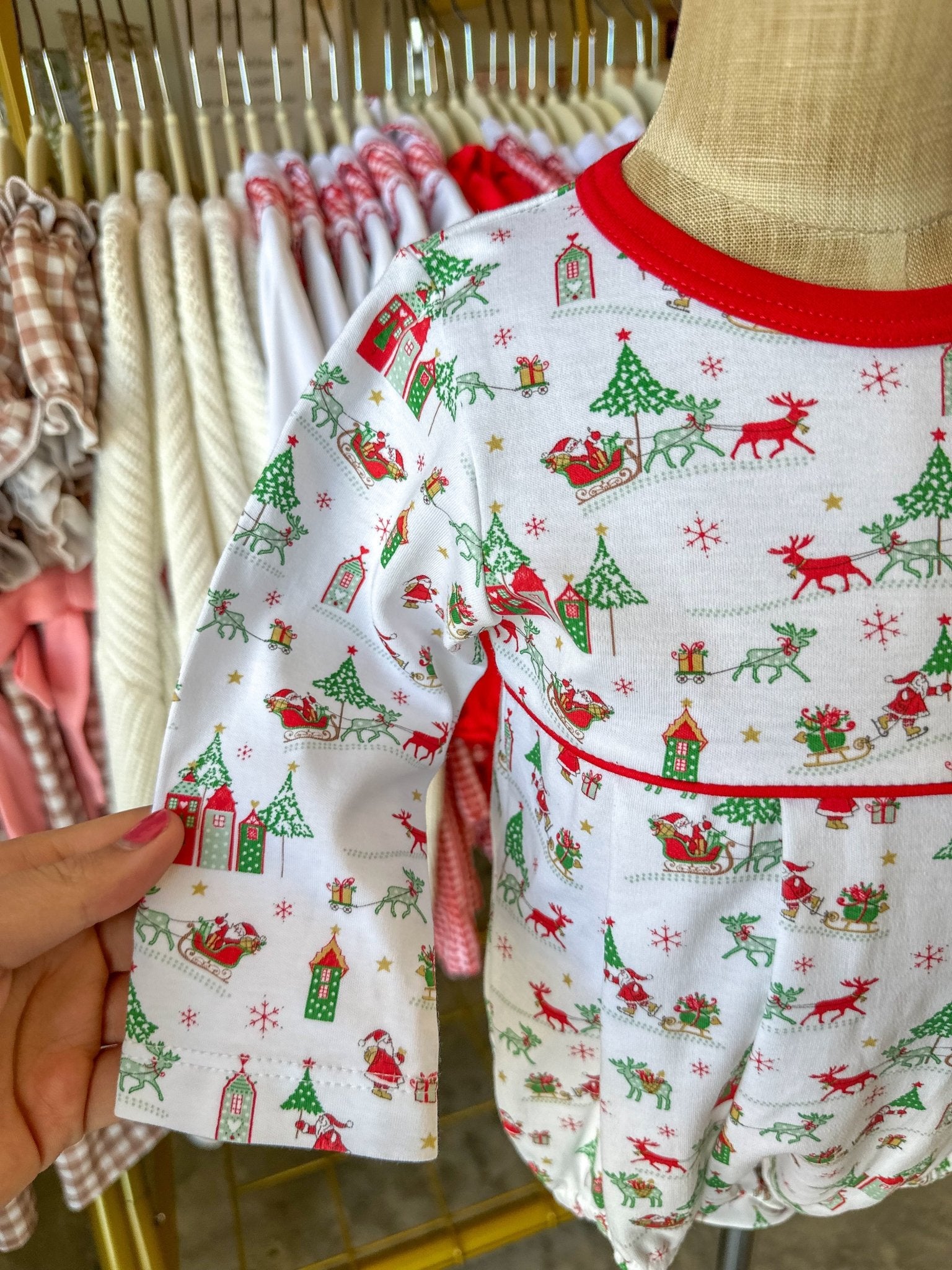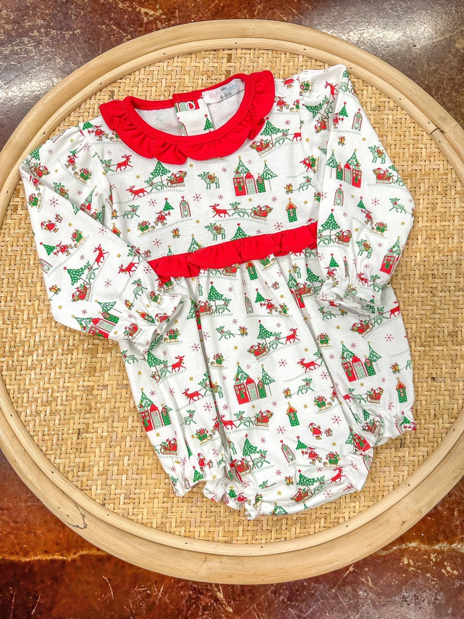 Baby Loren’s Christmas Bubble is made from buttery-soft cotton and features the most precious Christmas print trimmed in festive red. A classic silhouette that’s perfect for holiday gatherings, family photos, or cozy days by the tree.