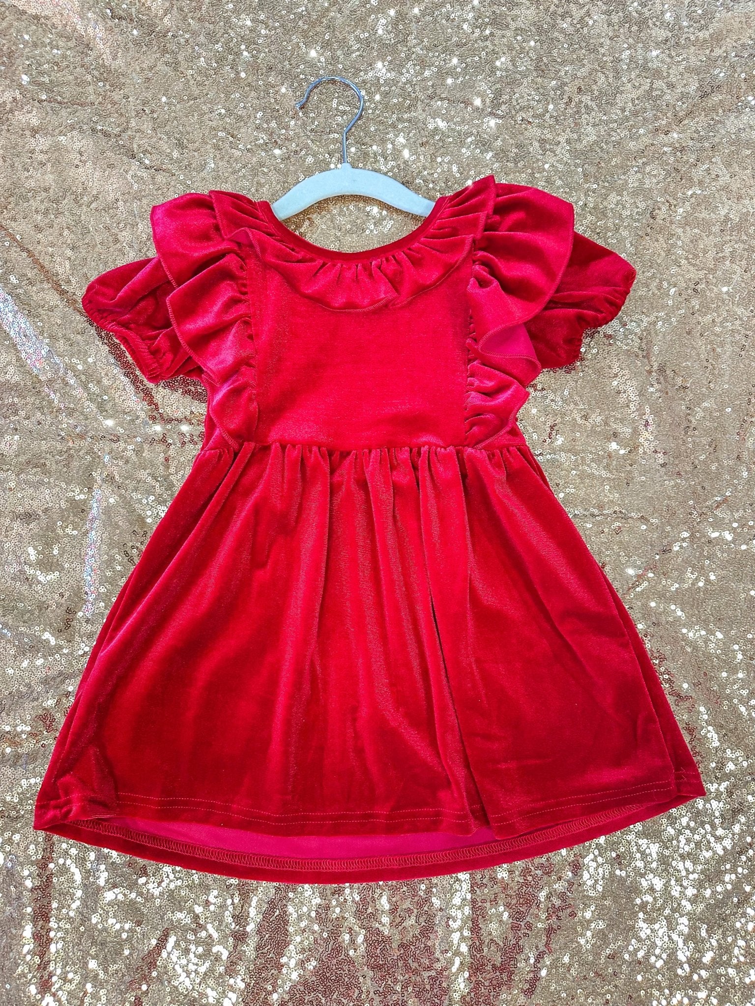 Girls Winter Festive Red Velvet Dress