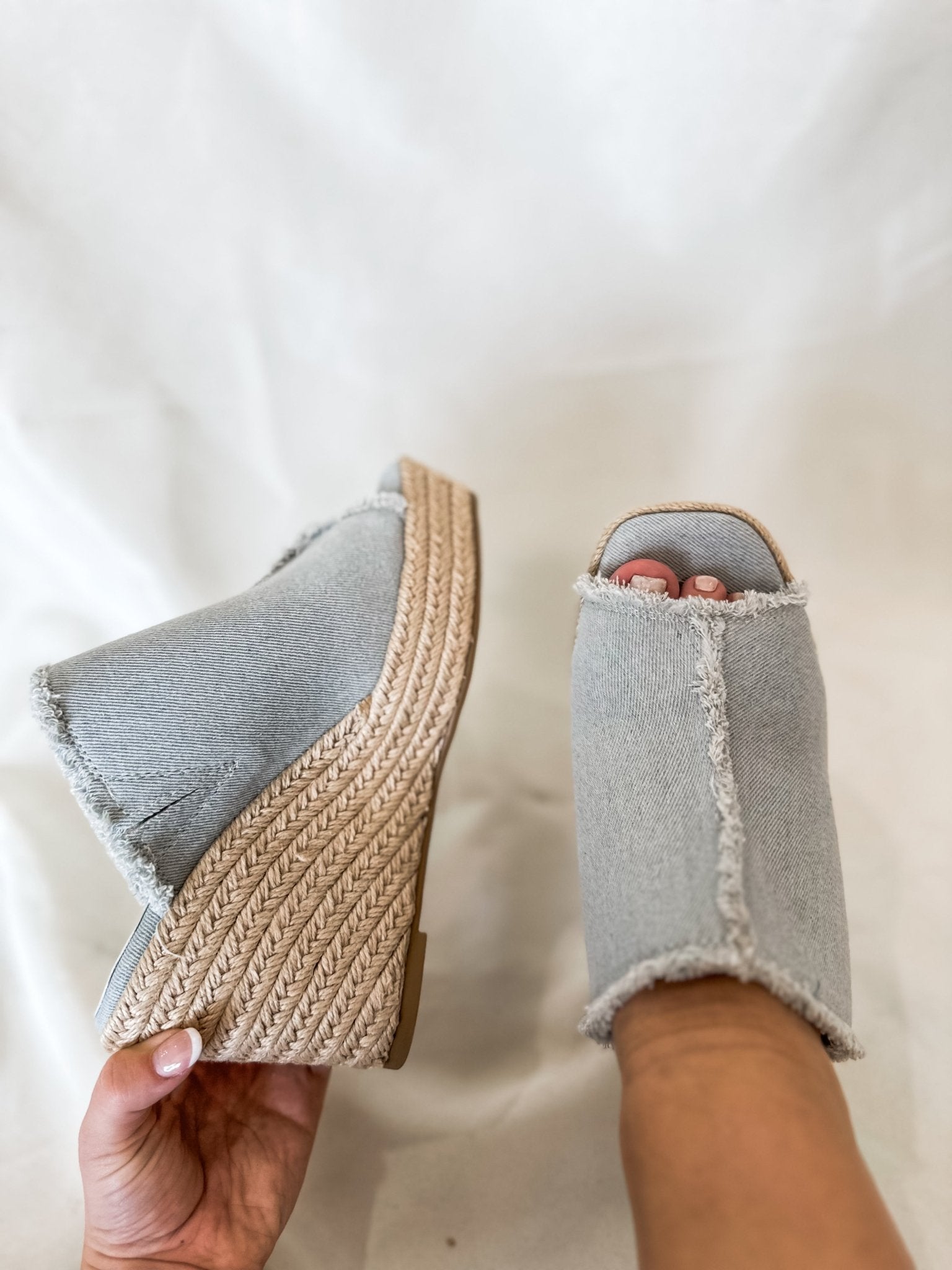 Denim Verona Frayed Espadrille Wedge - OASIS SOCIETY