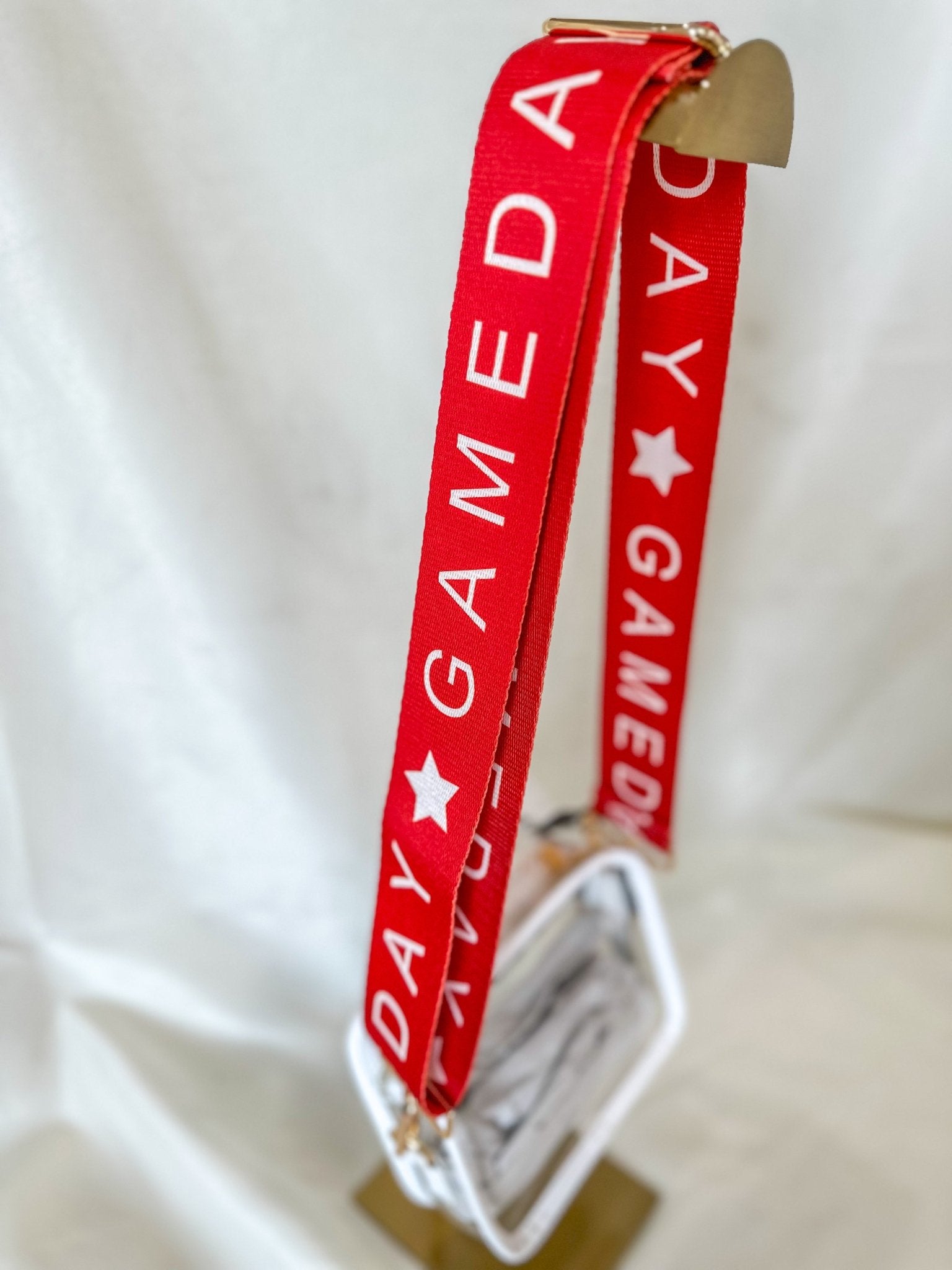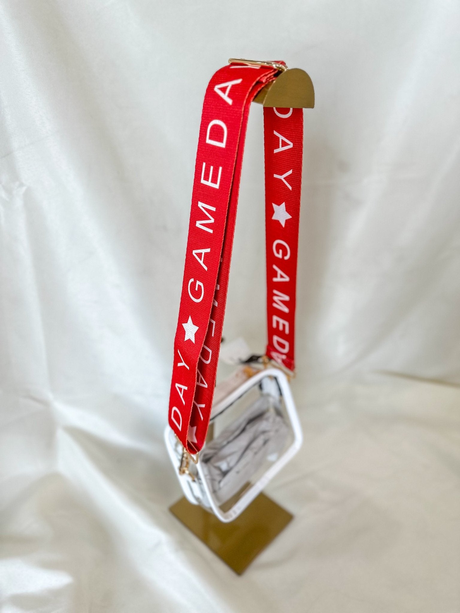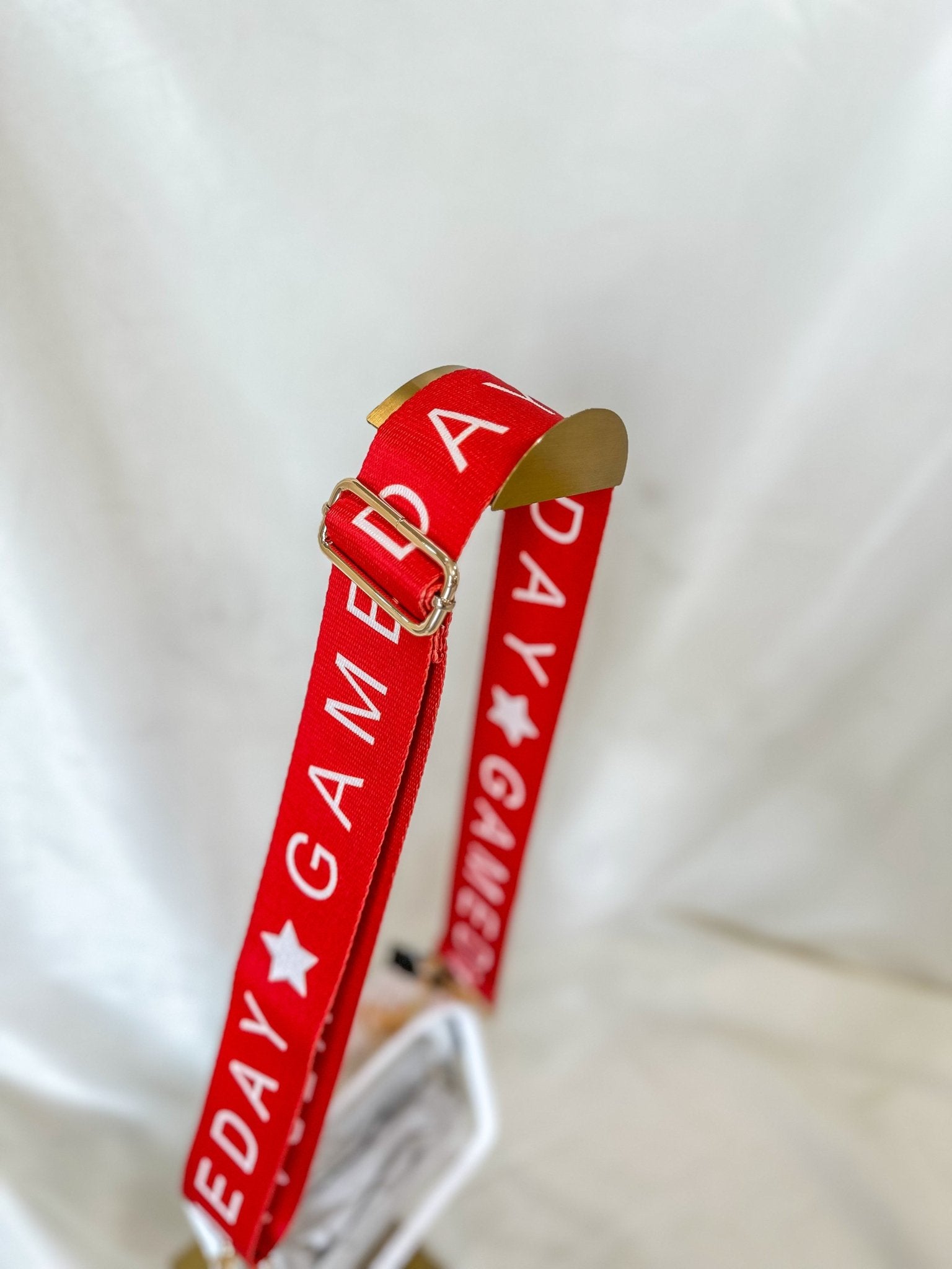 Carry your team spirit wherever you go with the Red Gameday Girl Bag Strap. Featuring a vibrant red design with bold lettering, this adjustable strap easily transforms your favorite bag into a game day must-have. Durable and stylish, it’s perfect for tailgates, stadium trips, or everyday wear.