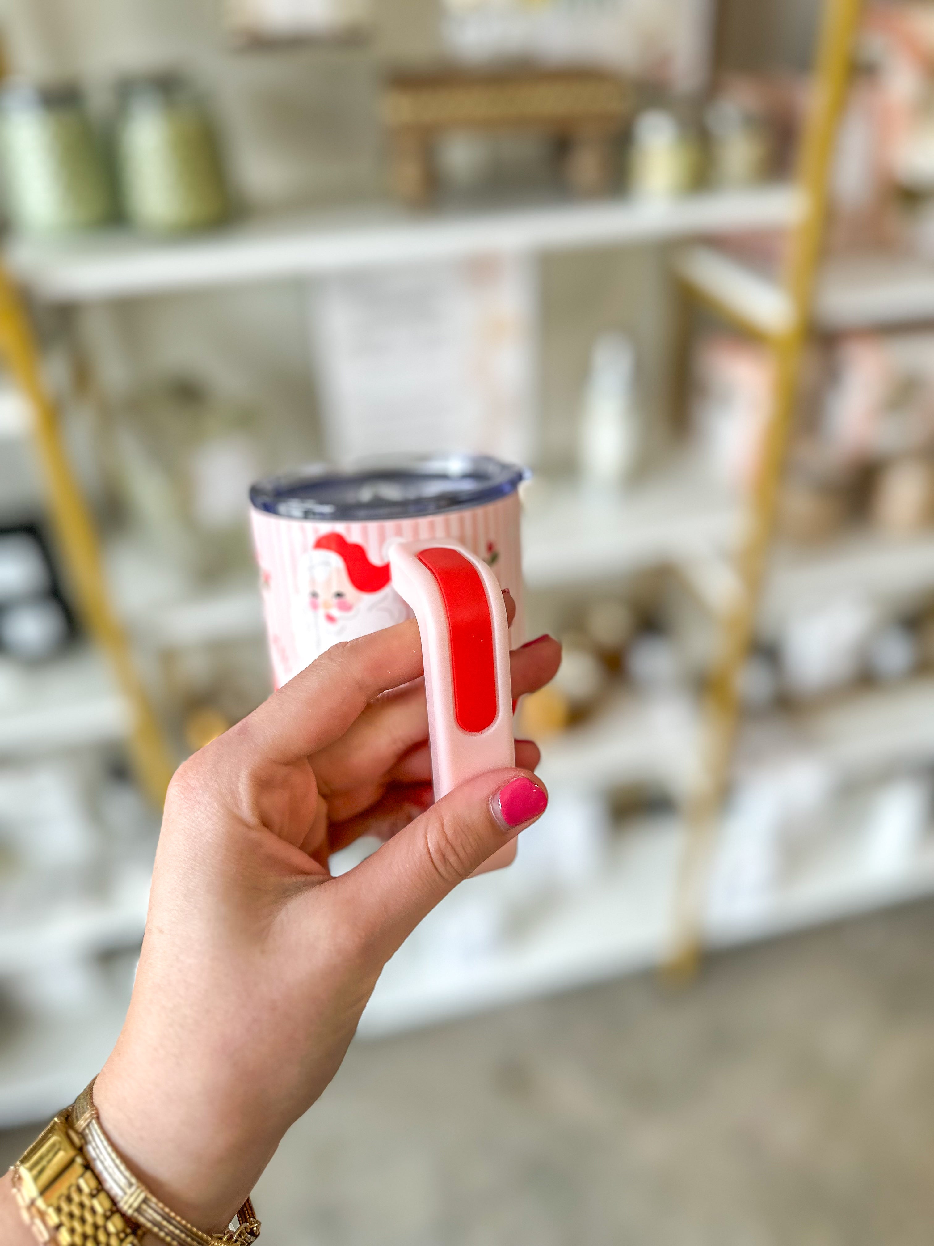This festive insulated mug features a playful red-and-white Santa print that keeps your favorite drinks merry and bright all winter long.