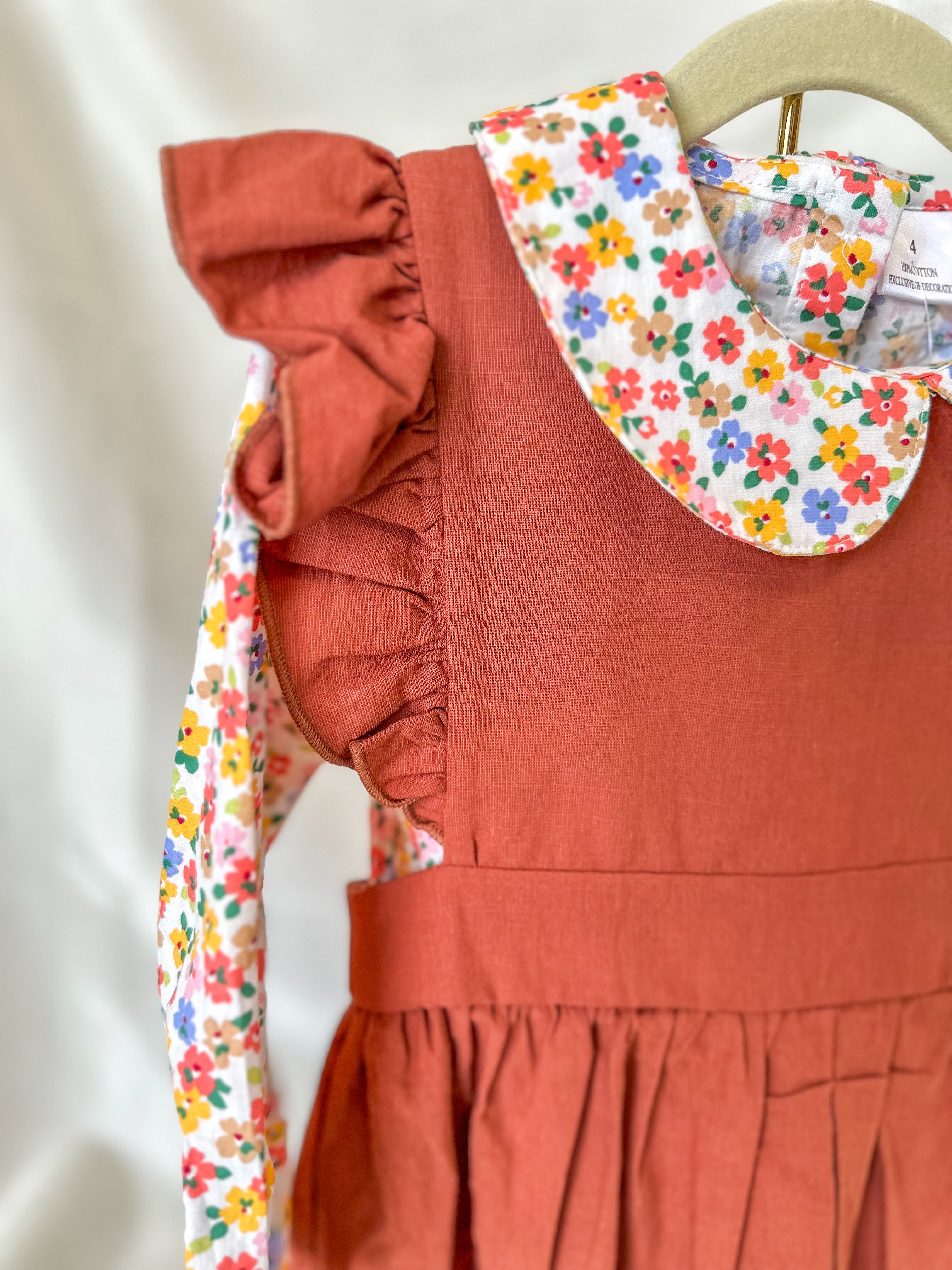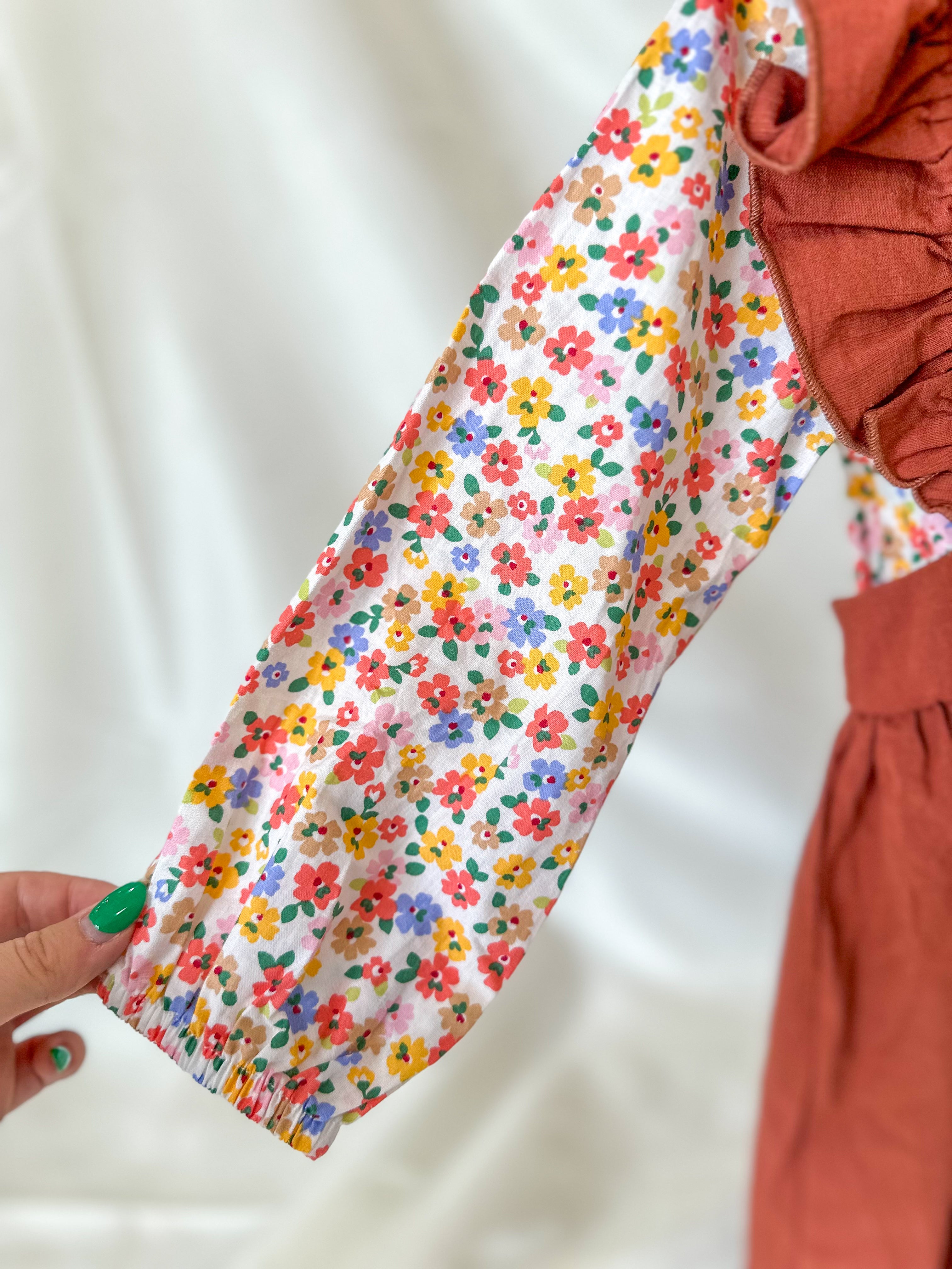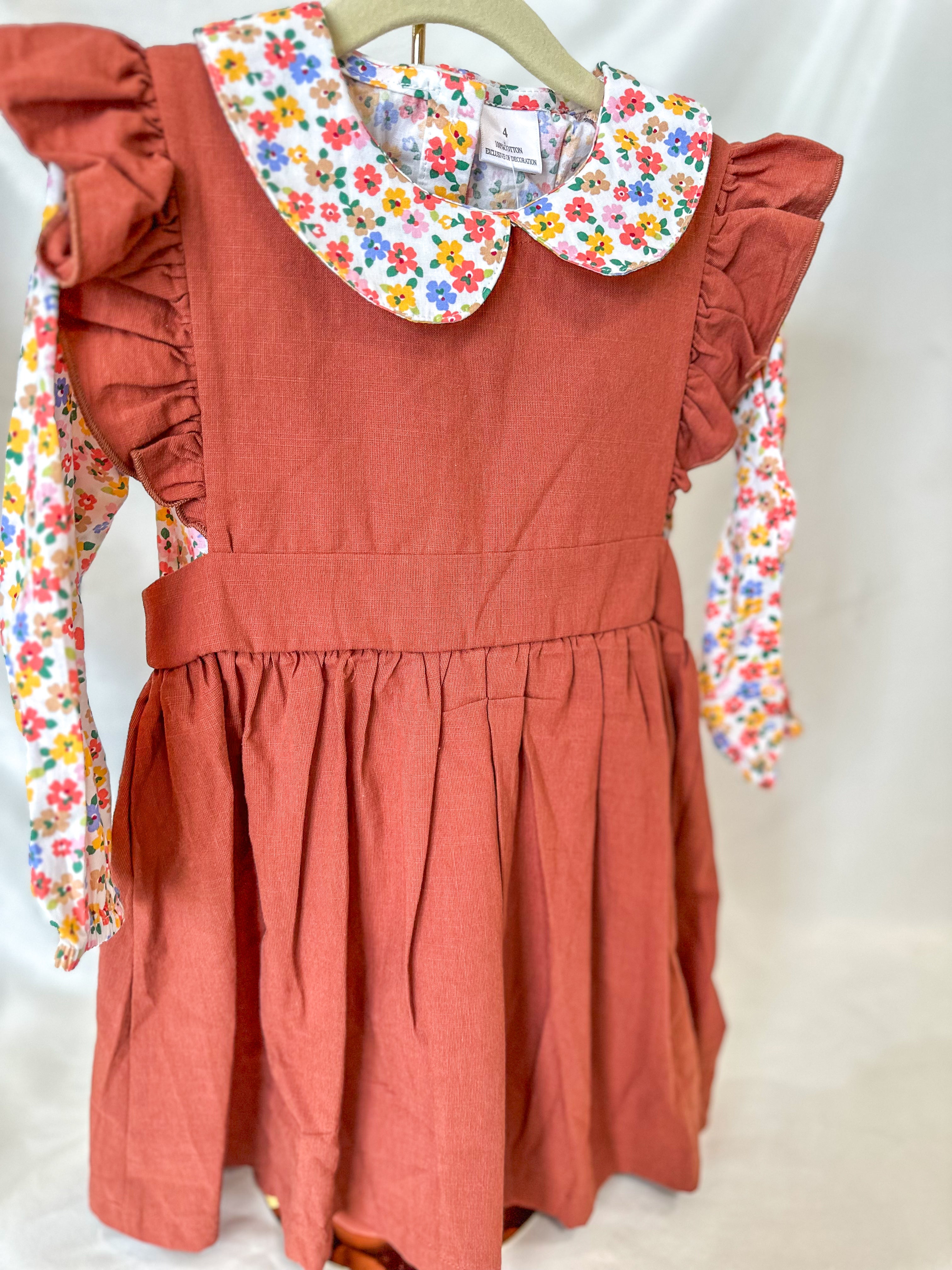 This dress set is sooo pretty! The colors SCREAM fall! This set comes with the floral shirt and the brown dress!