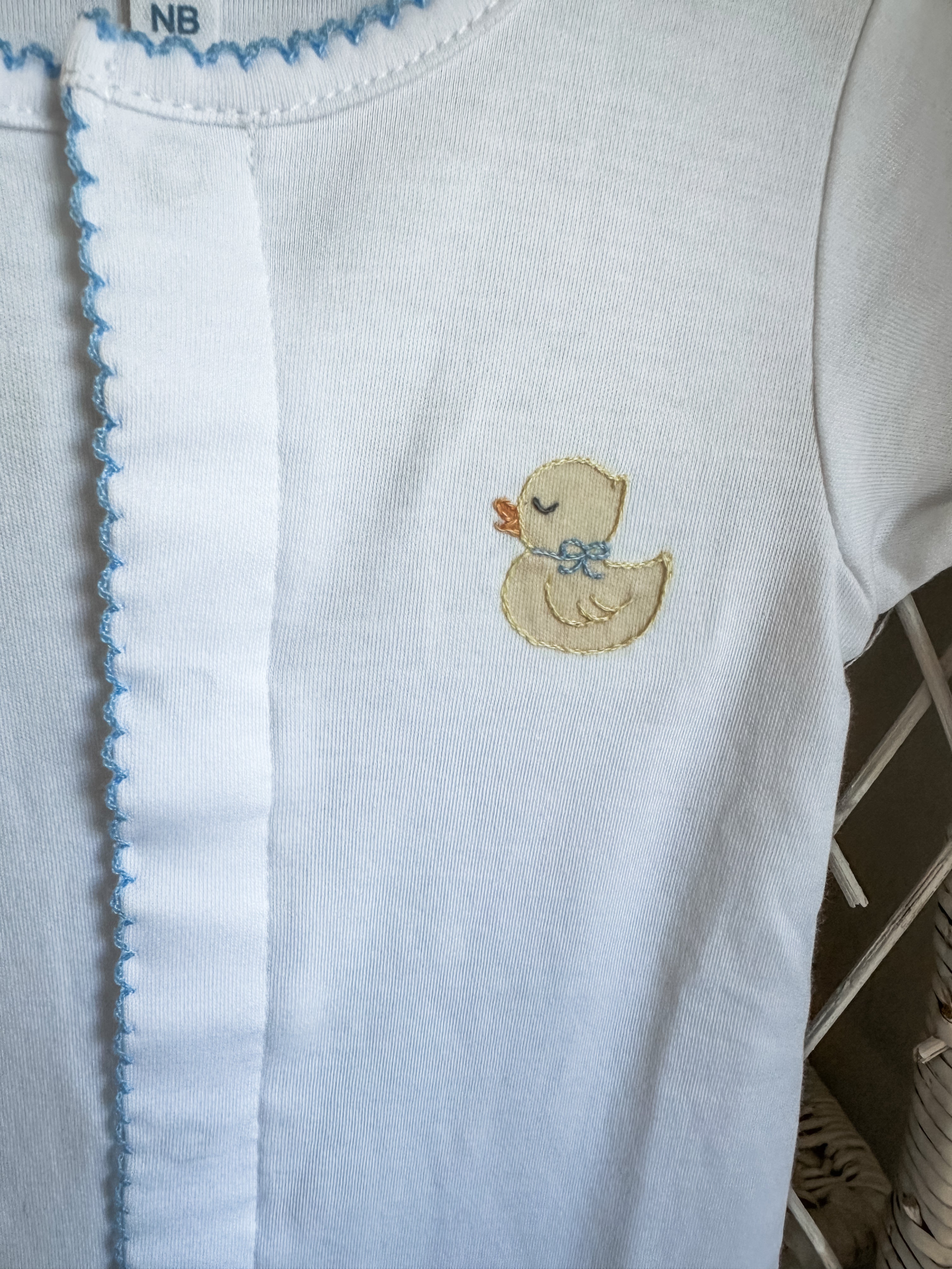 Magnolia Baby Precious Ducklings Blue Embroidered Footie