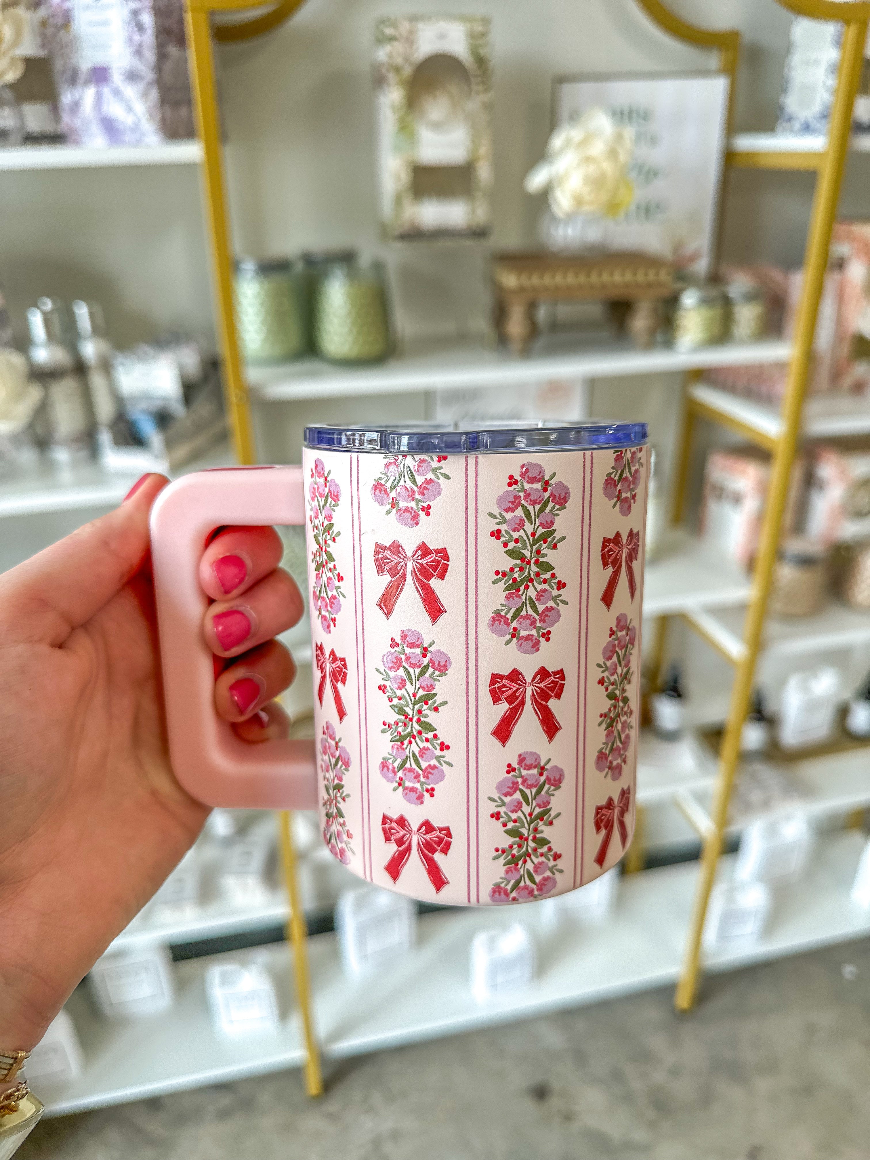 This cheerful insulated mug features a dainty red bow print that’s merry, bright, and oh-so-perfect for gifting (or keeping for yourself!).