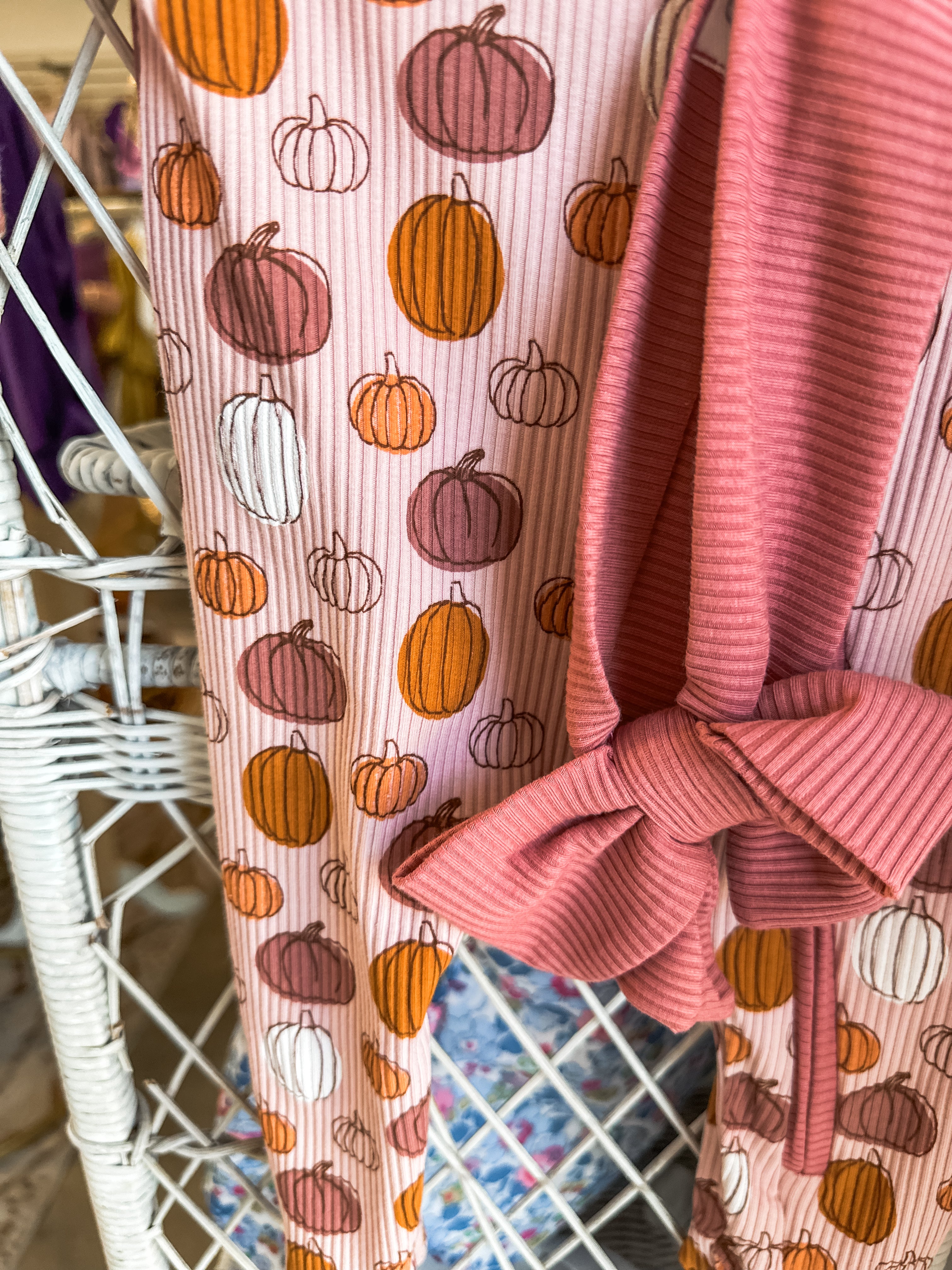 The PERFECT fall girl outfit!! This zippie is perfect for your little girls from the pink zippie with the pink pumpkins and it even comes with a pink bow headband! What’s not to love?