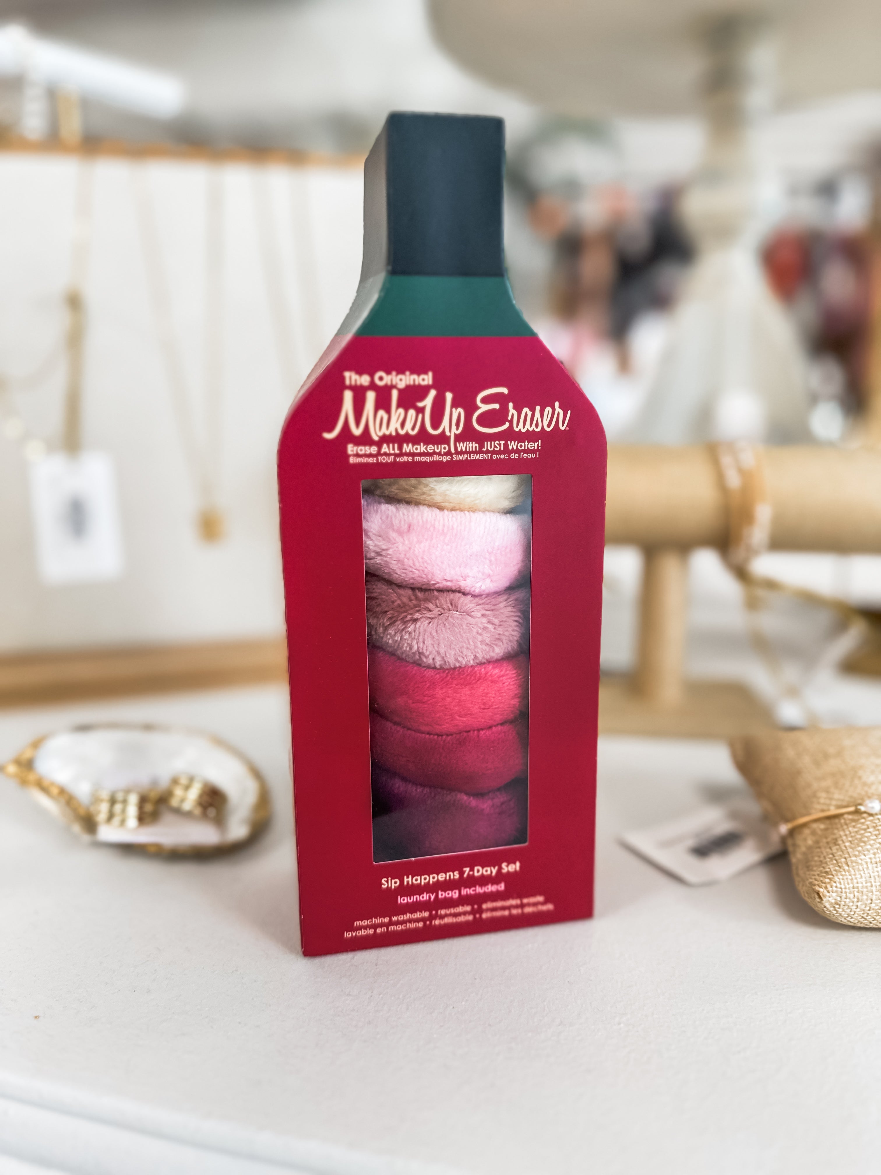 Is that makeup just not coming off as easy as it used to? Those makeup wipes won't do the trick. This super cute Sip Happens 7-Day Makeup Eraser Gift Set is perfect for solving all of your makeup removing problems! Just add water, no soap needed! It also makes the best gift for your girls!