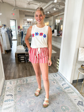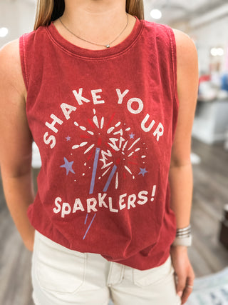 Red Smocking Detail Ruffle Hem Knit Tank Top