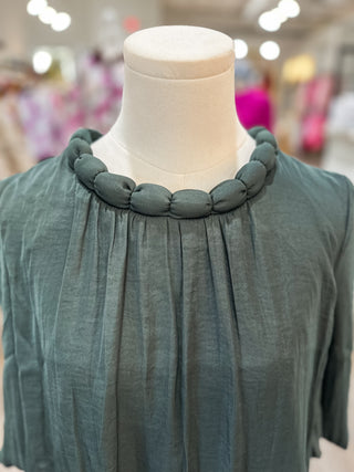 DOORBUSTER: Hunter Green Polish & Poise Scuba Half Zip Short Sleeve Shorts Sets
