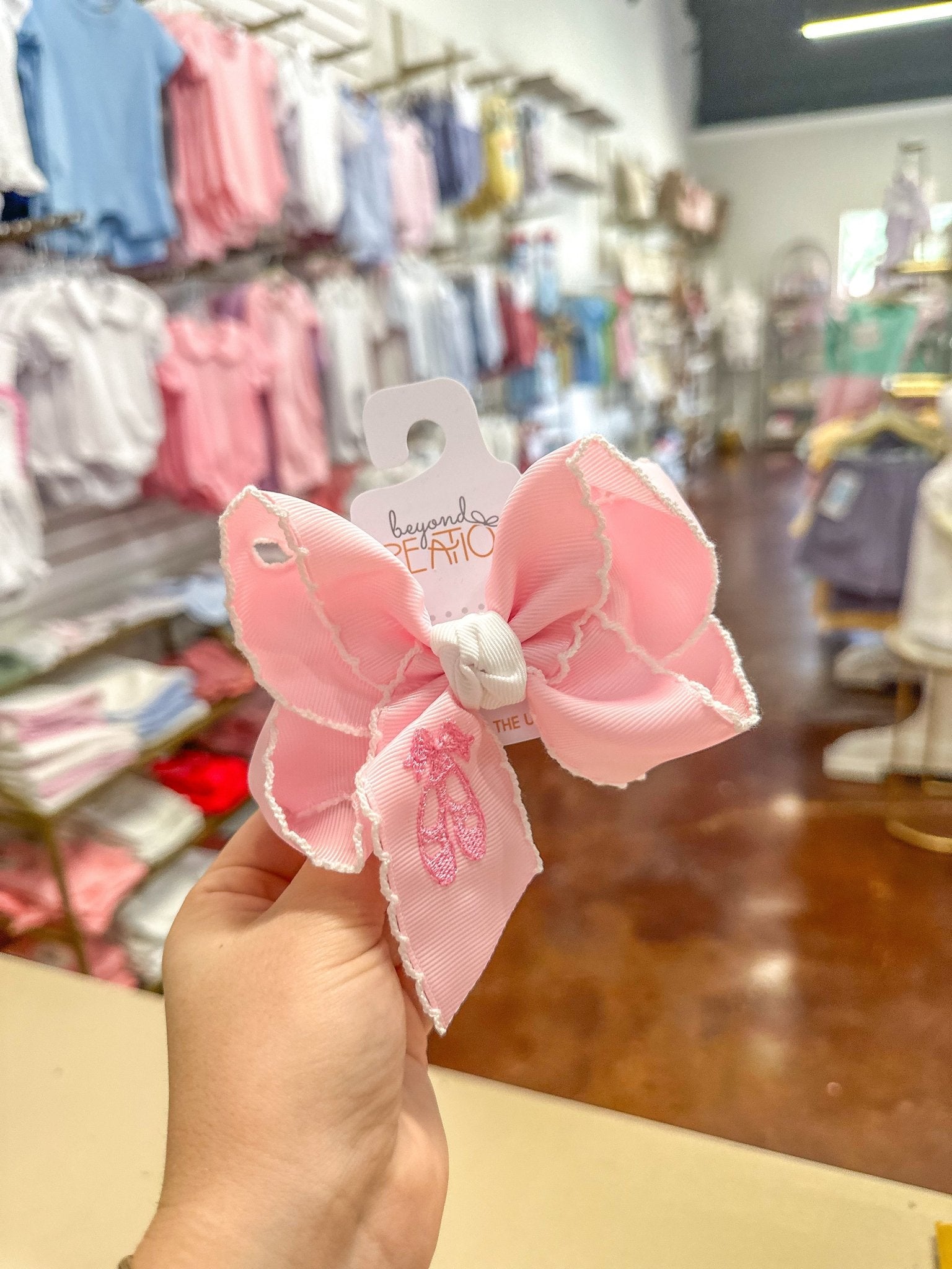 Step into a world of charm with these pink ballet shoes accented by crisp white trim and a delicate bow. Perfect for adding a playful touch to any outfit, they bring a sweet, graceful vibe that’s both fun and stylish. Whether for dance or dress-up, these shoes make every step feel light and joyful.