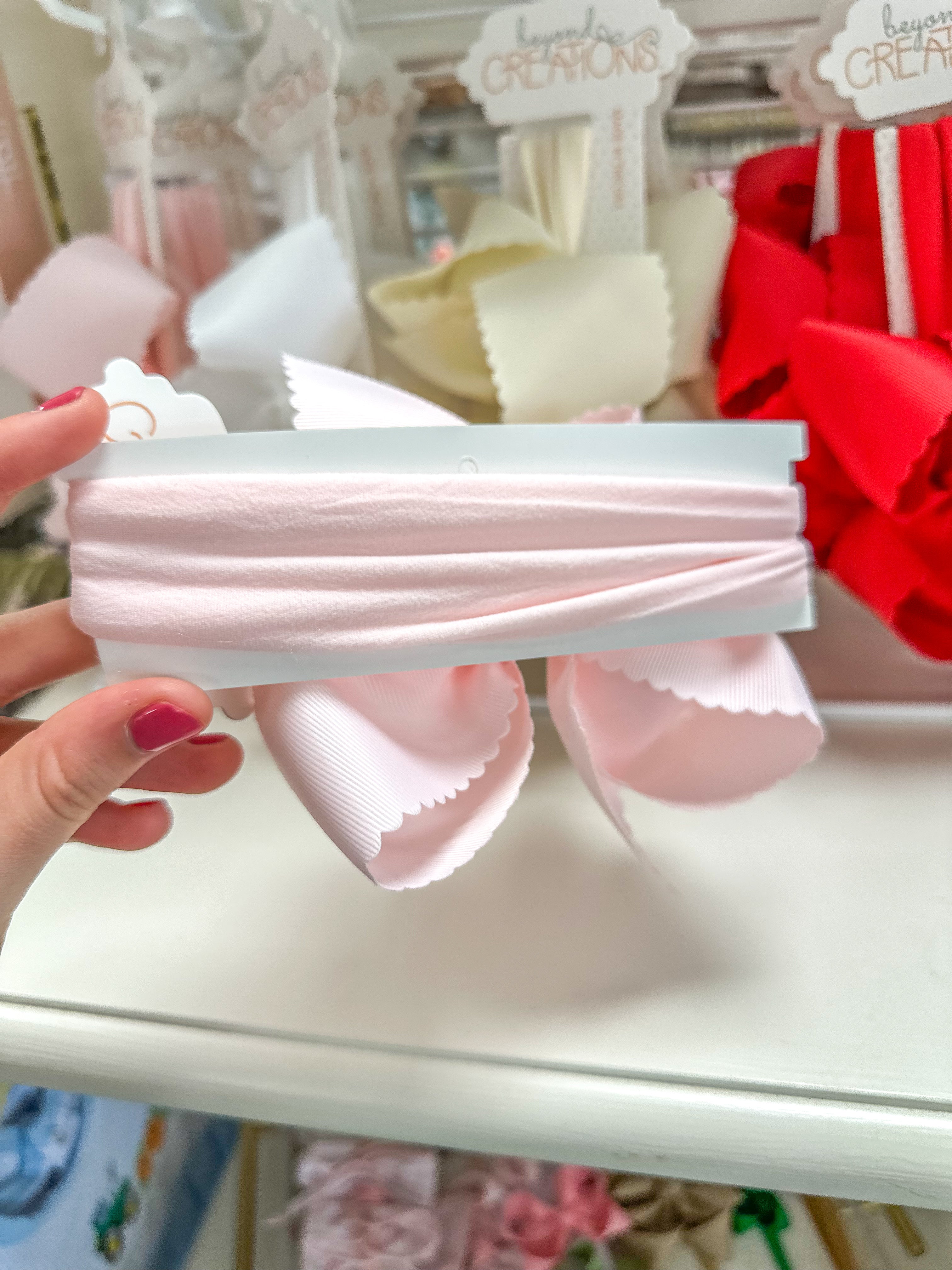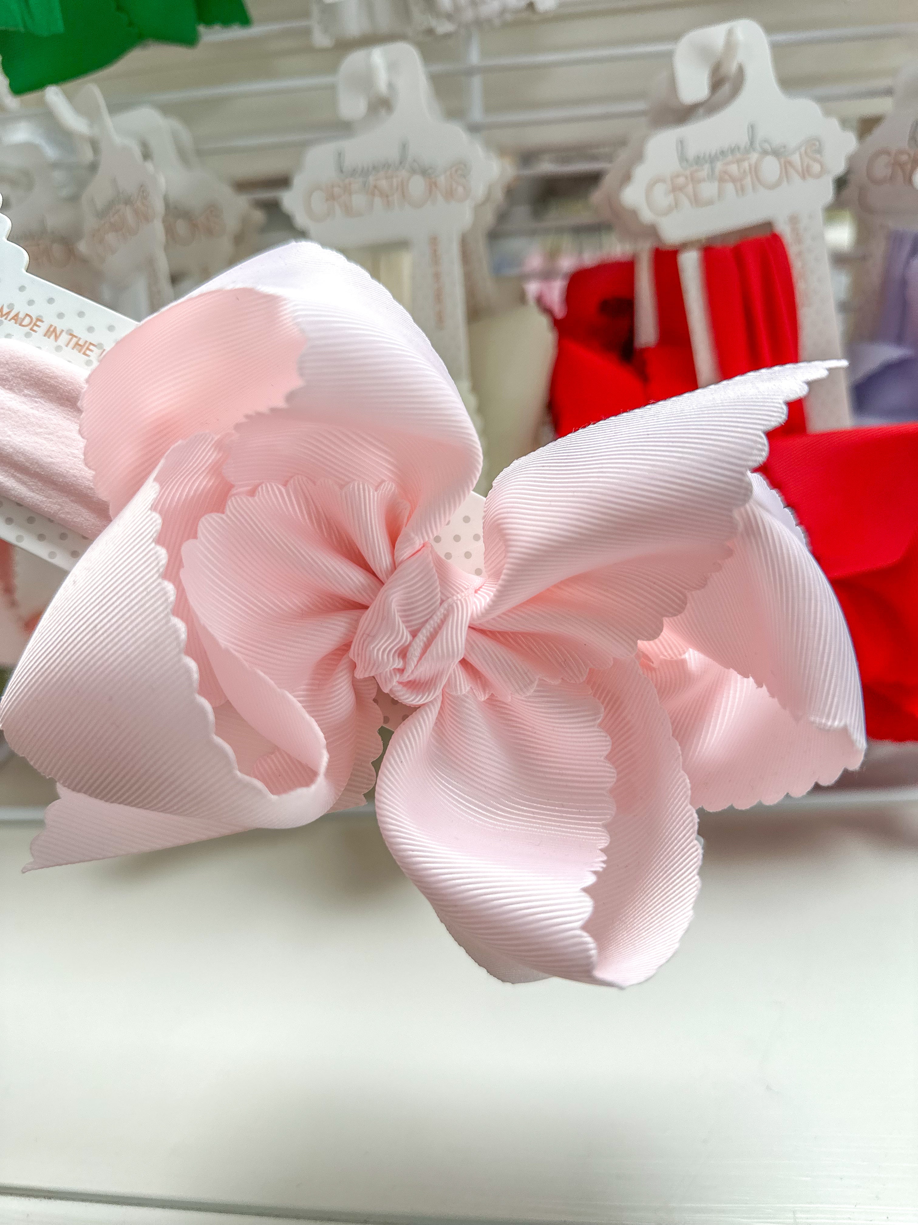 Powder Pink Scalloped Edge Pantyhose Headband Bow XL
