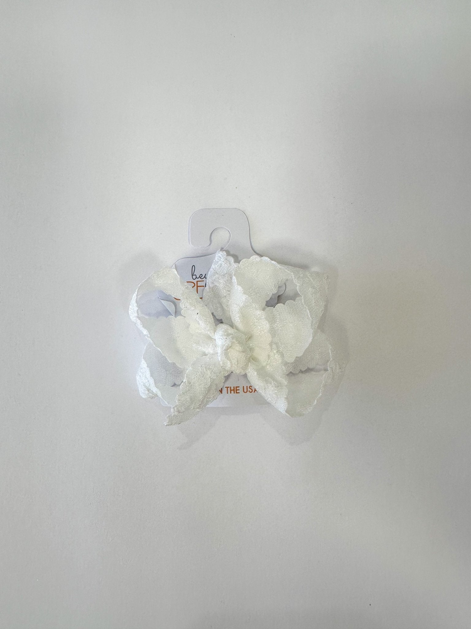 Add a touch of charm with this White Scalloped Lace Flower Bow. Its delicate scalloped edges and floral lace design bring a playful, feminine flair to any outfit or accessory. Perfect for brightening up your look with a sweet, whimsical accent.