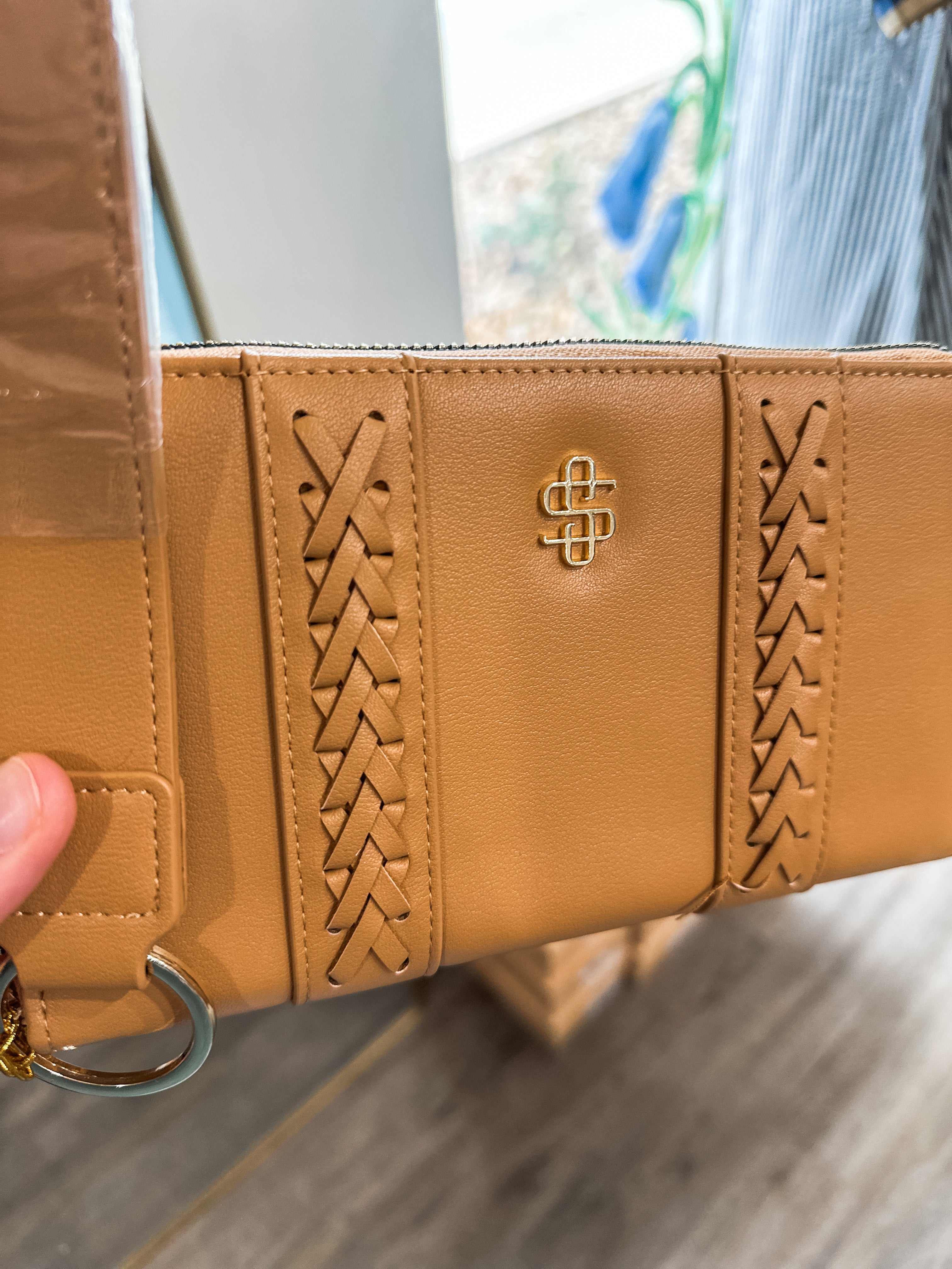 • Features: Braided front detailing, zippered closure, multiple card slots, detachable wristlet strap, Simply Southern logo