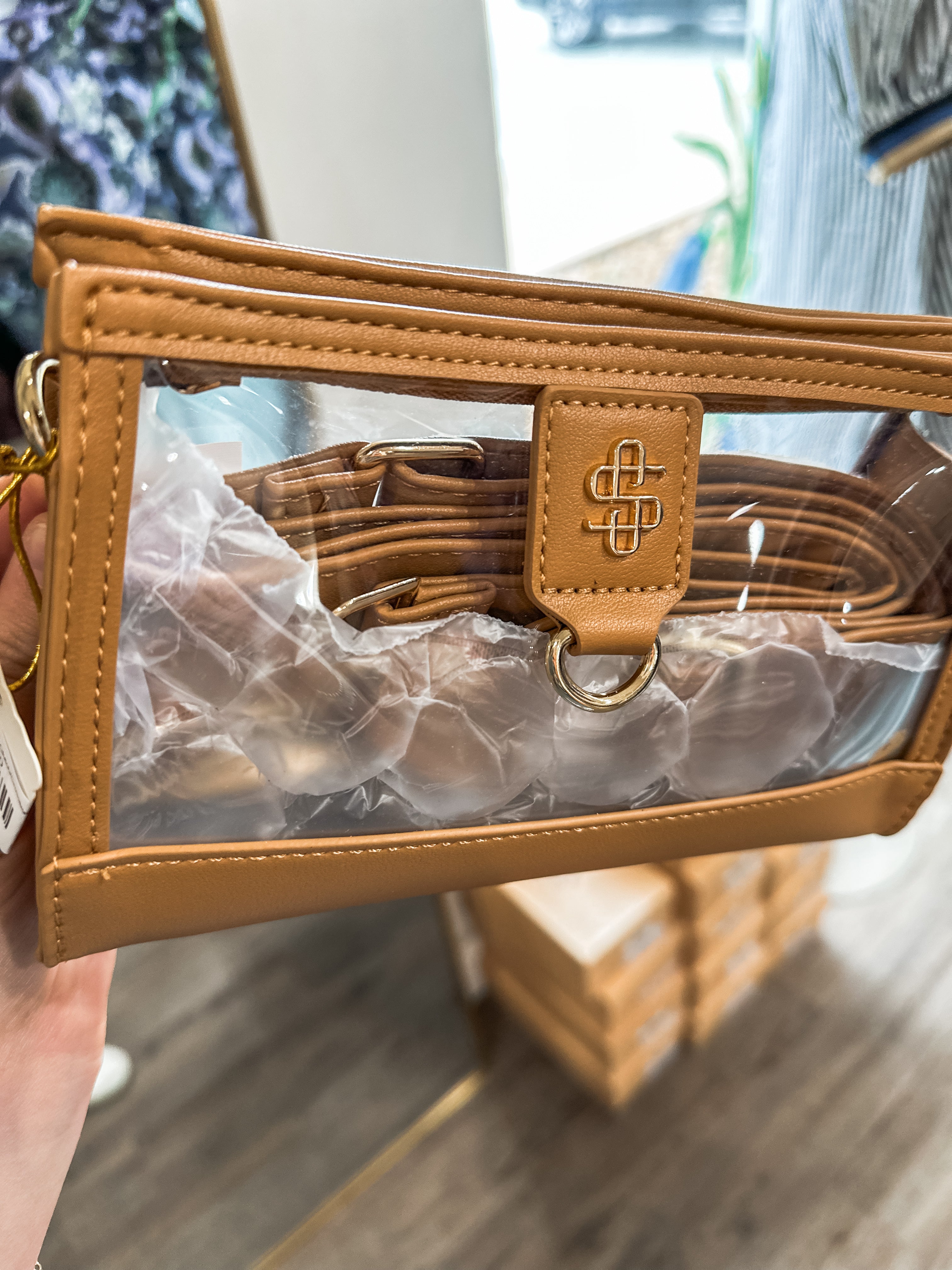 • Features: Detachable strap, event-approved clear body, gold-tone hardware, Simply Southern logo