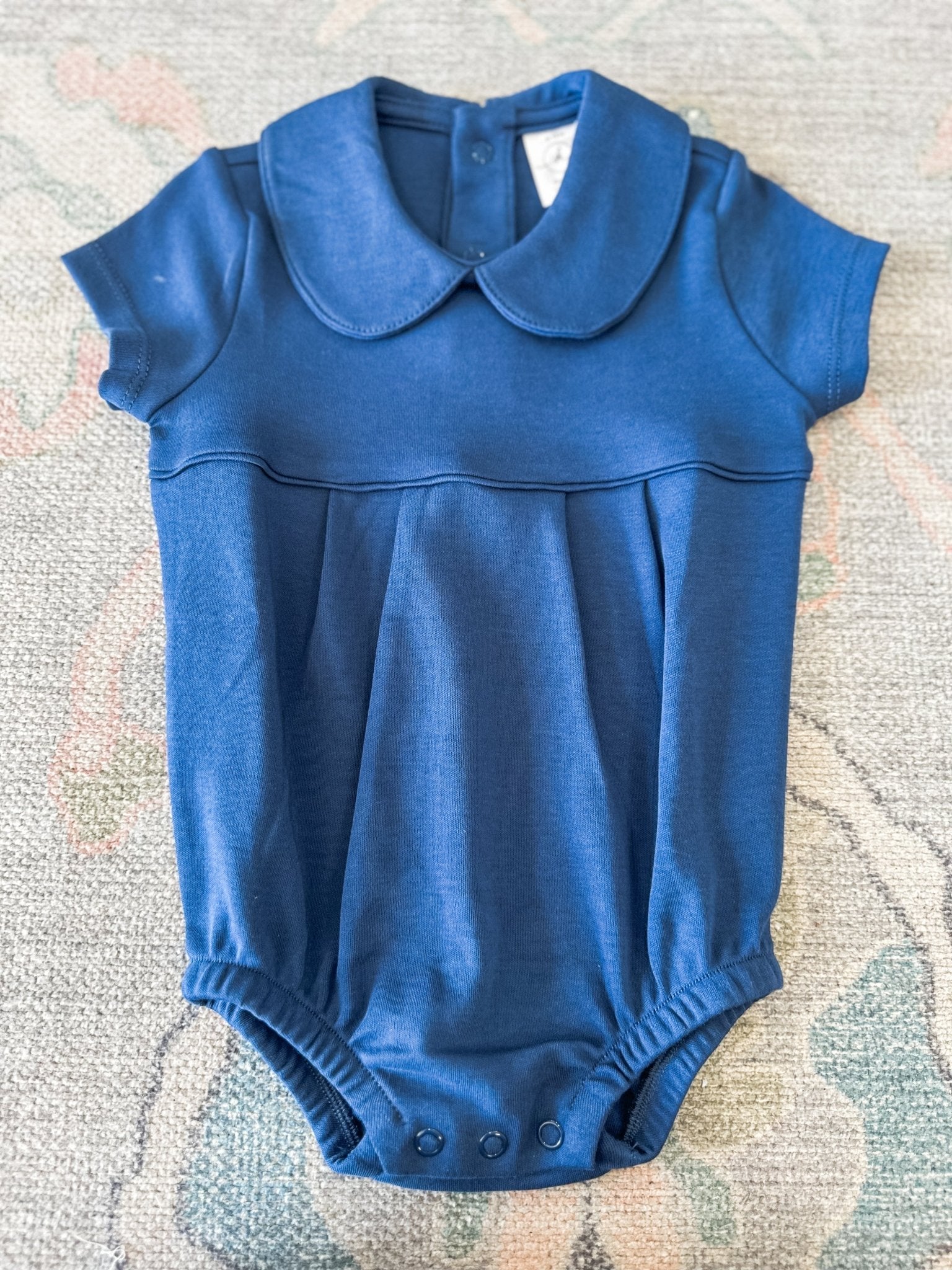 Navy Pleated Short Sleeve Bubble