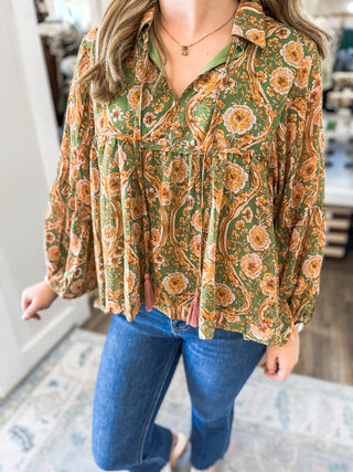 Hunter Green Laid Back Luxe Long Sleeve Top