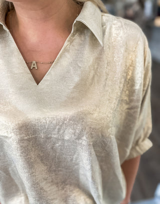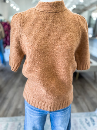 Camel Ever So Chic Collar Neck Button Down Long Sleeve Blouse
