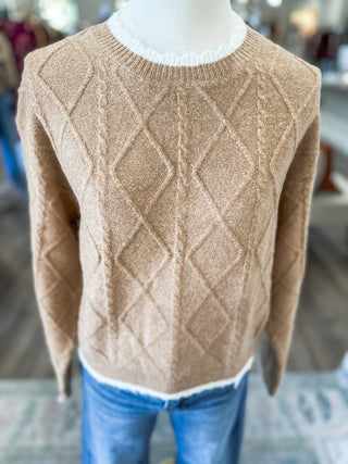 Camel Timeless Diamond Knit Long Sleeve Sweater