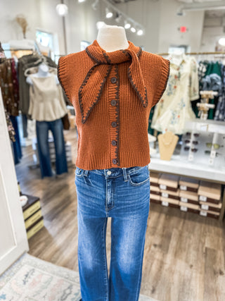 Toffee Margot Bow Knit Sleeveless Sweater Top