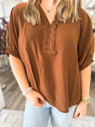 Red Everleaf Eyelet Short Sleeve V-Neck Top