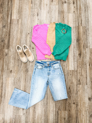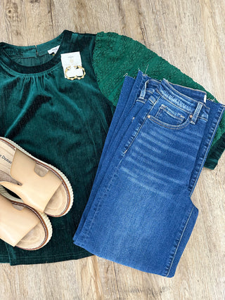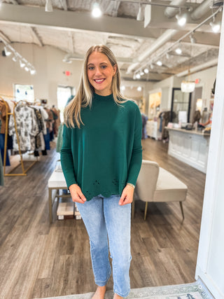 Hunter Green Soft & Sleek Scalloped Eyelet Hem Long Sleeve Sweater Top