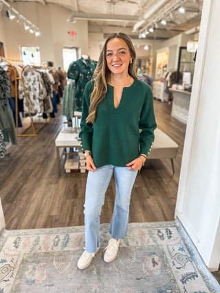 Hunter Green Puff Perfection Button Down Faux Leather Top