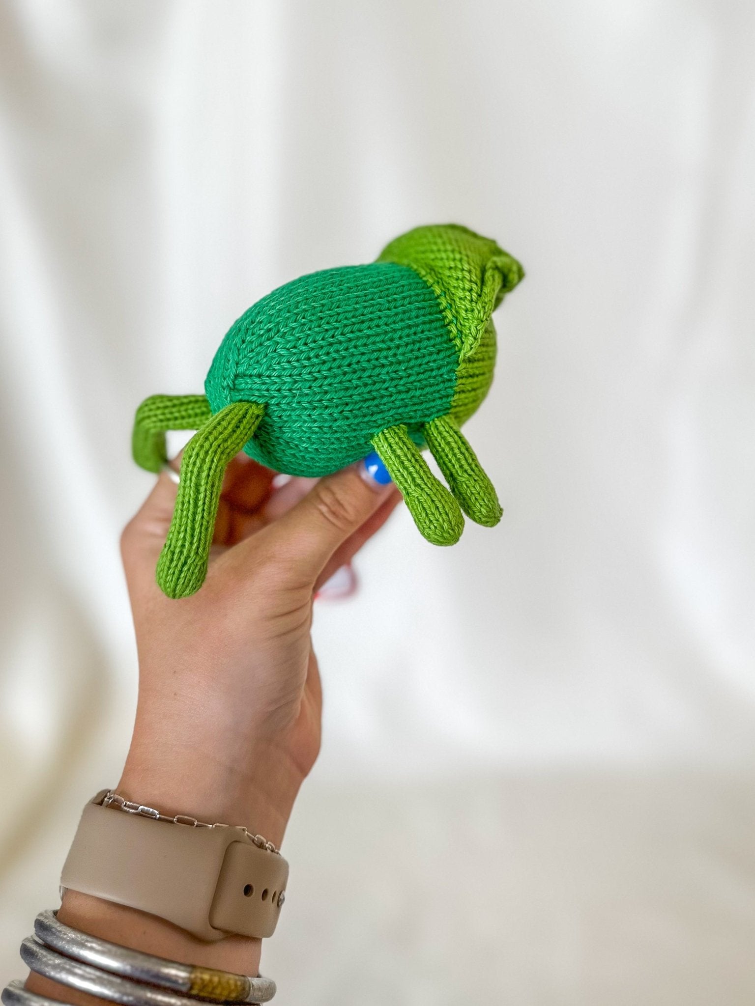 A quirky and colorful critter that brings big smiles and gentle sounds to little hands.