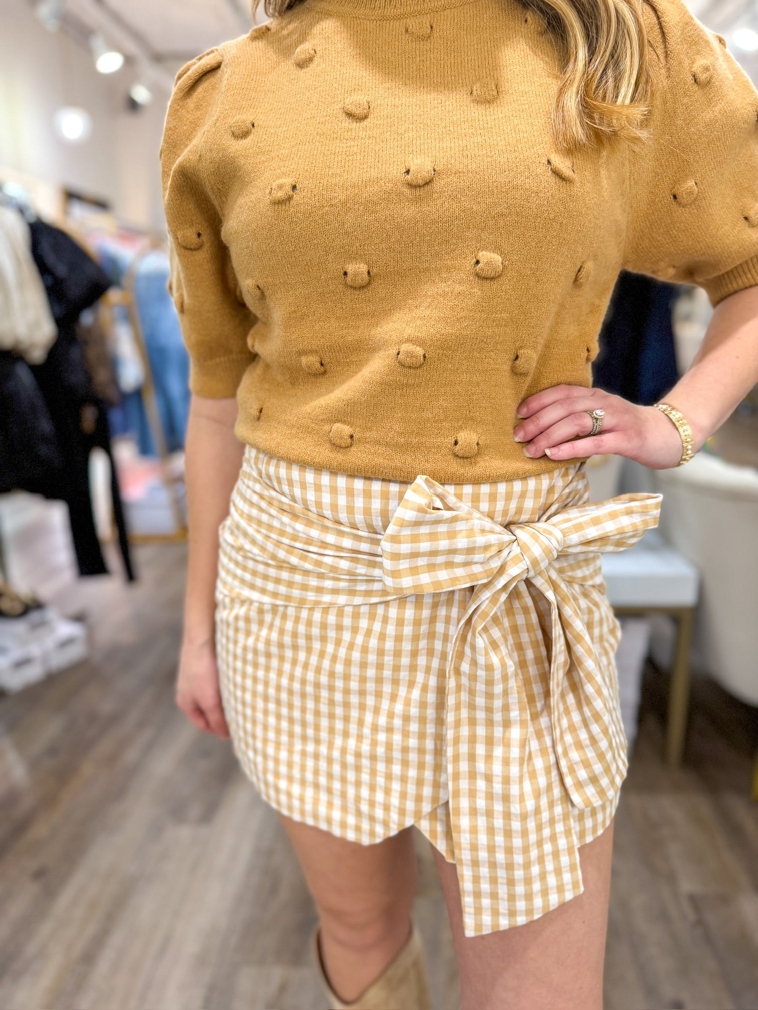 Brunch dates, summer picnics, or a casual day out—this skort is made for it all! The Honey Picnic Bow Skort pairs a timeless gingham print with a playful oversized bow detail for an effortlessly chic look. The wrap-style front gives the illusion of a skirt while keeping the comfort of shorts, making it as practical as it is pretty.