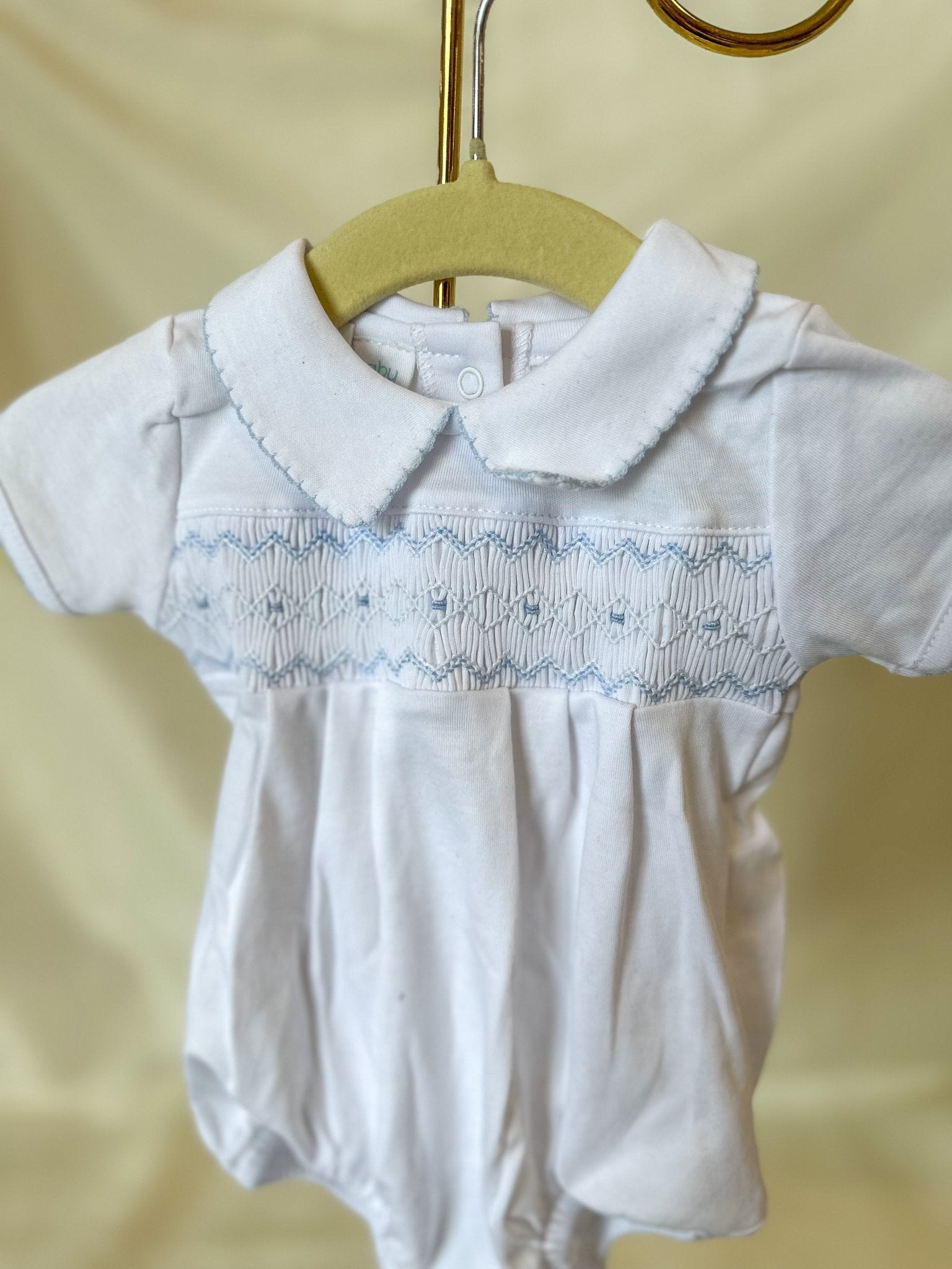 Sure to steal your heart in this Magnolia Baby Bubble! Perfect for sunny days, portraits, or special celebrations—this sweet smocked bubble is a classic choice for your baby boy.