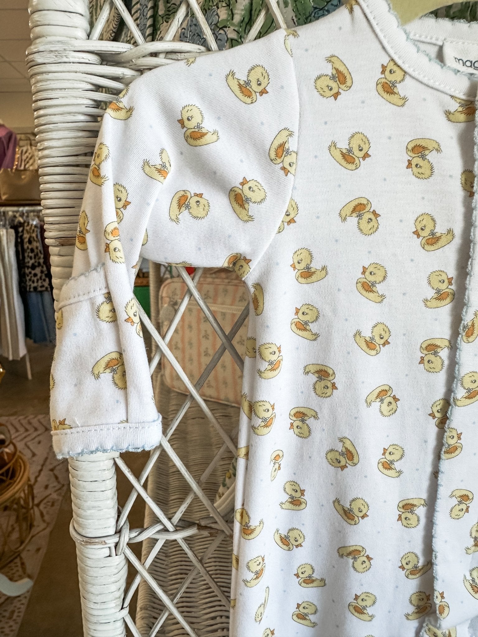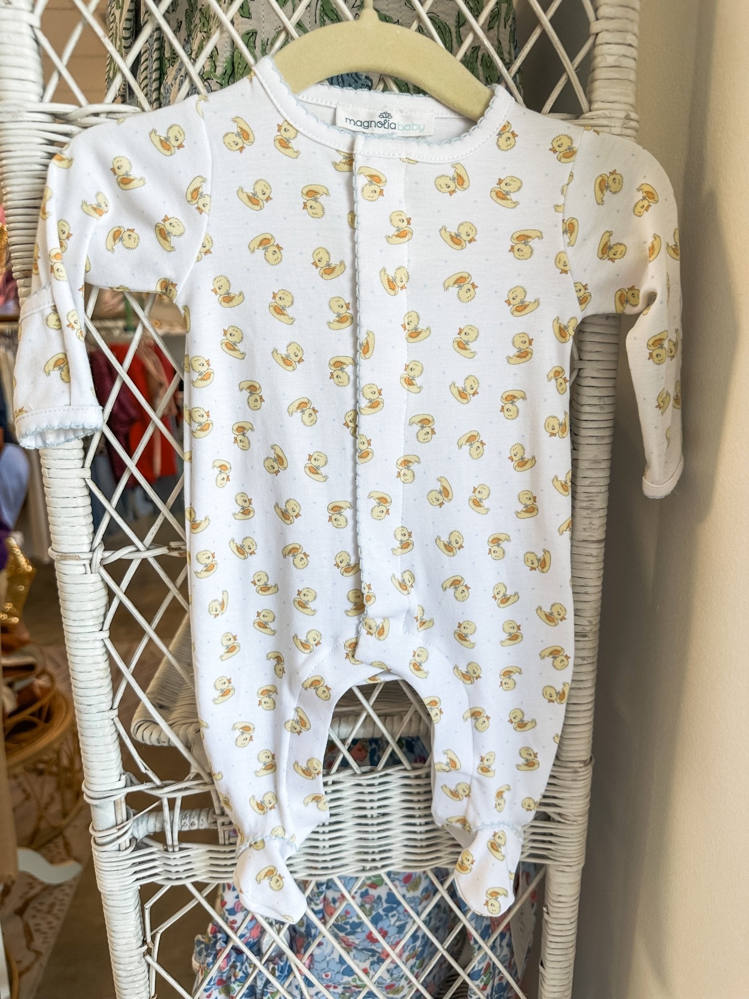 The coziest cuddle companion for your little one—this footie is as soft as it is adorable. Covered in a cheerful yellow duckling print with light blue scallop trim, this footie features magnetic closures for super easy diaper changes (even in the middle of the night!). Made from premium cotton that’s gentle on delicate skin.