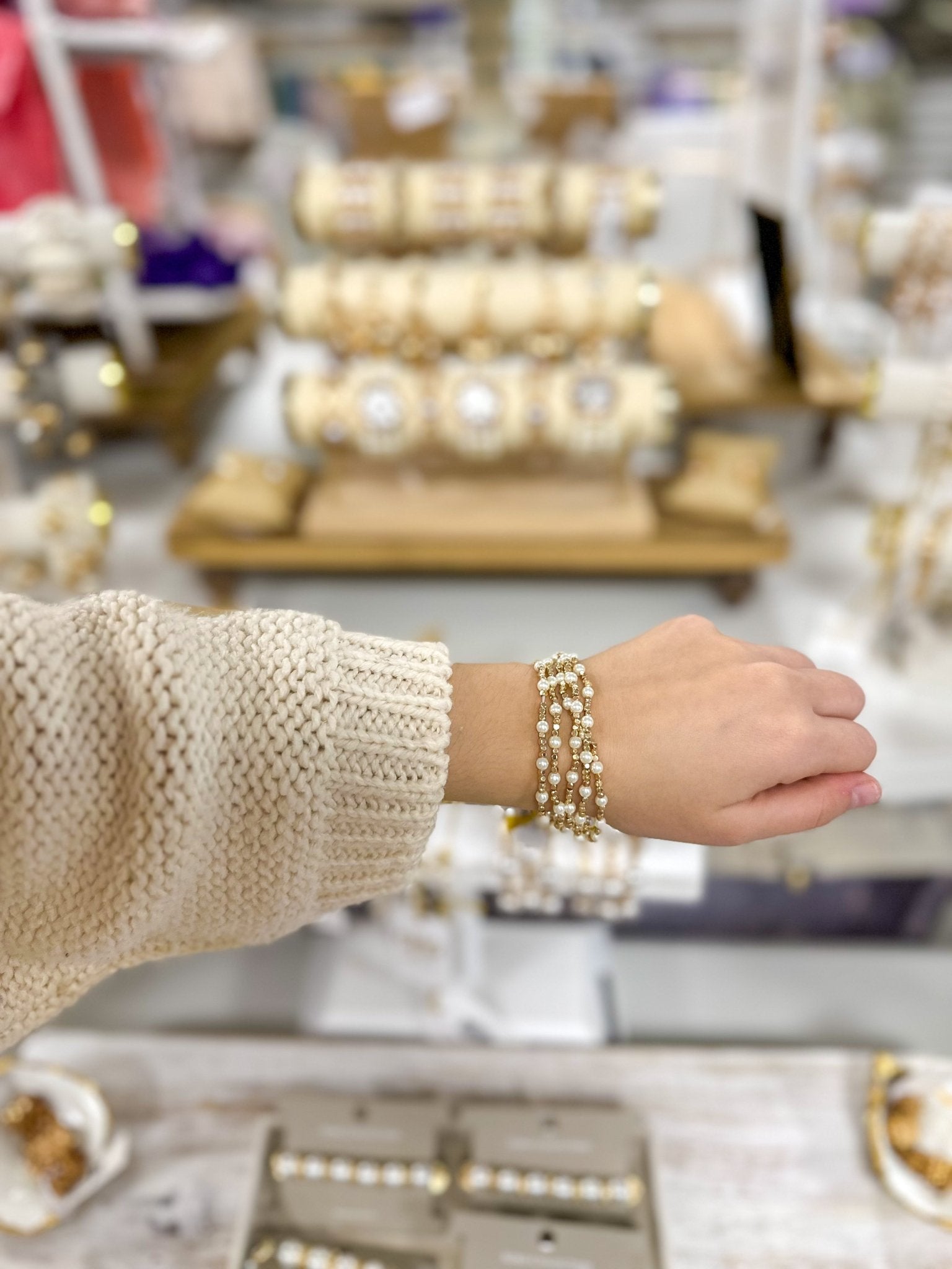 Gold & Pearl Beaded Delicate Darling Bracelet Set of 5