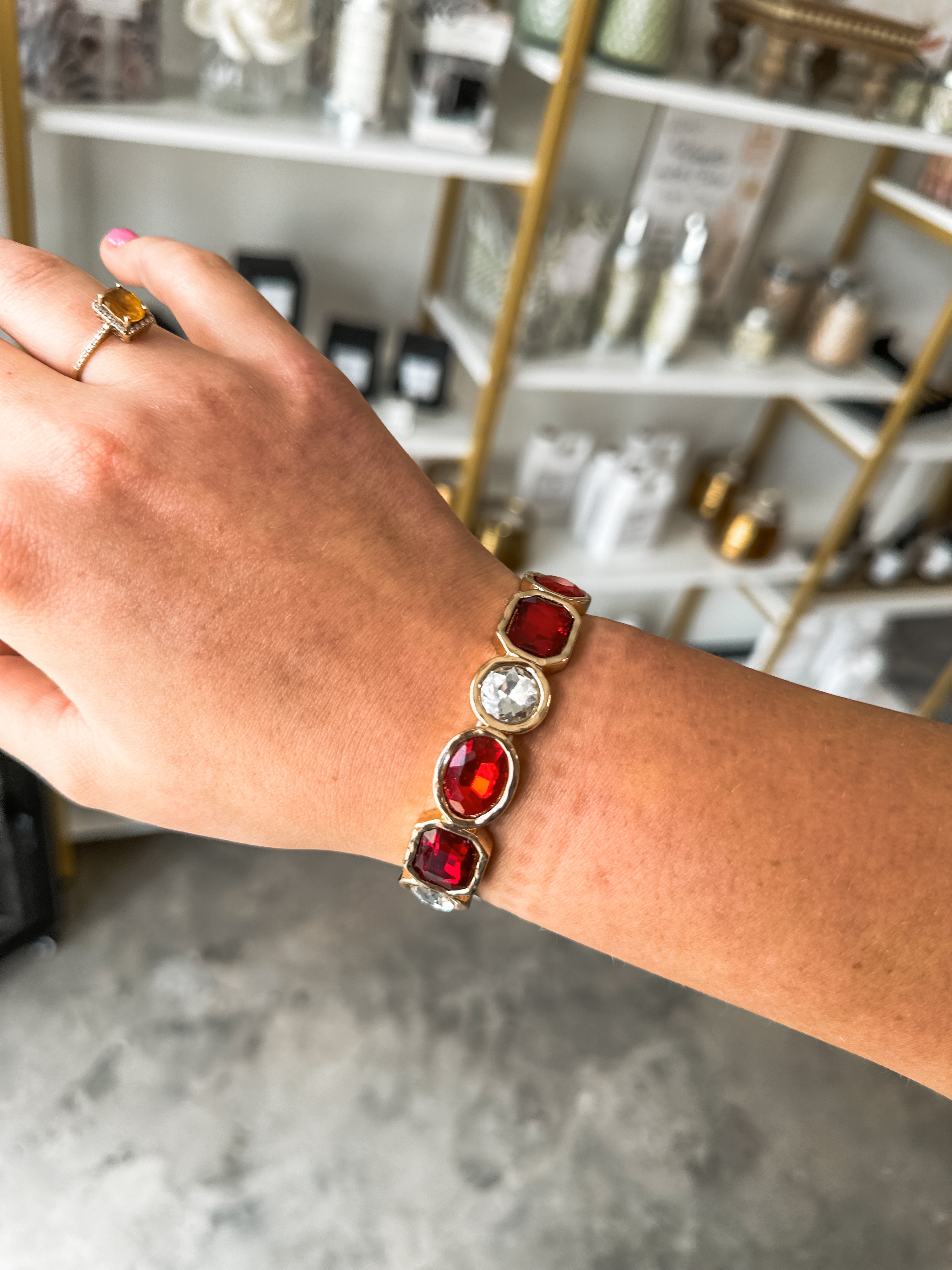 Gold W/ Red & Clear Crystals Stretch Bracelets
