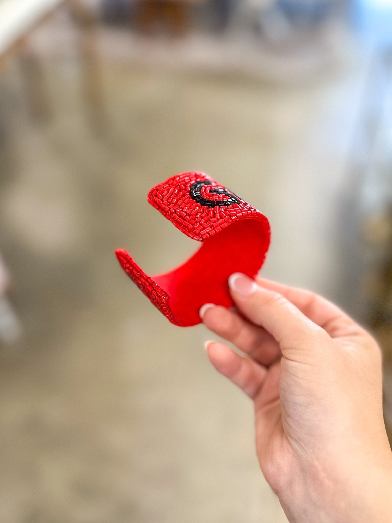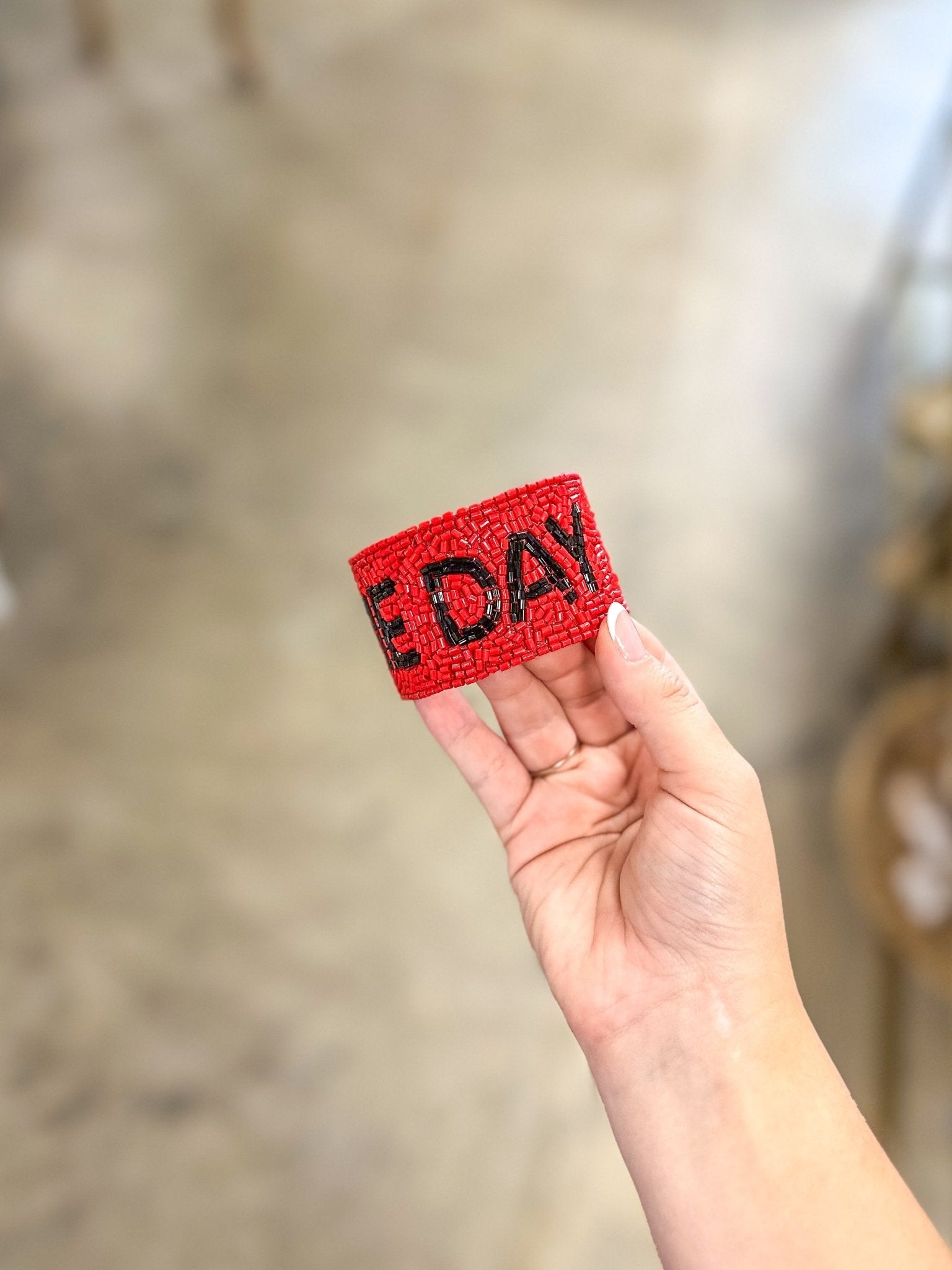 Celebrate game day in style with the Red & Black Game Day Beaded Snap Bracelet. Featuring vibrant red and black beads and a convenient snap closure, this bracelet adds a spirited touch to any outfit. Lightweight and adjustable, it’s perfect for cheering on your team in comfort and style.