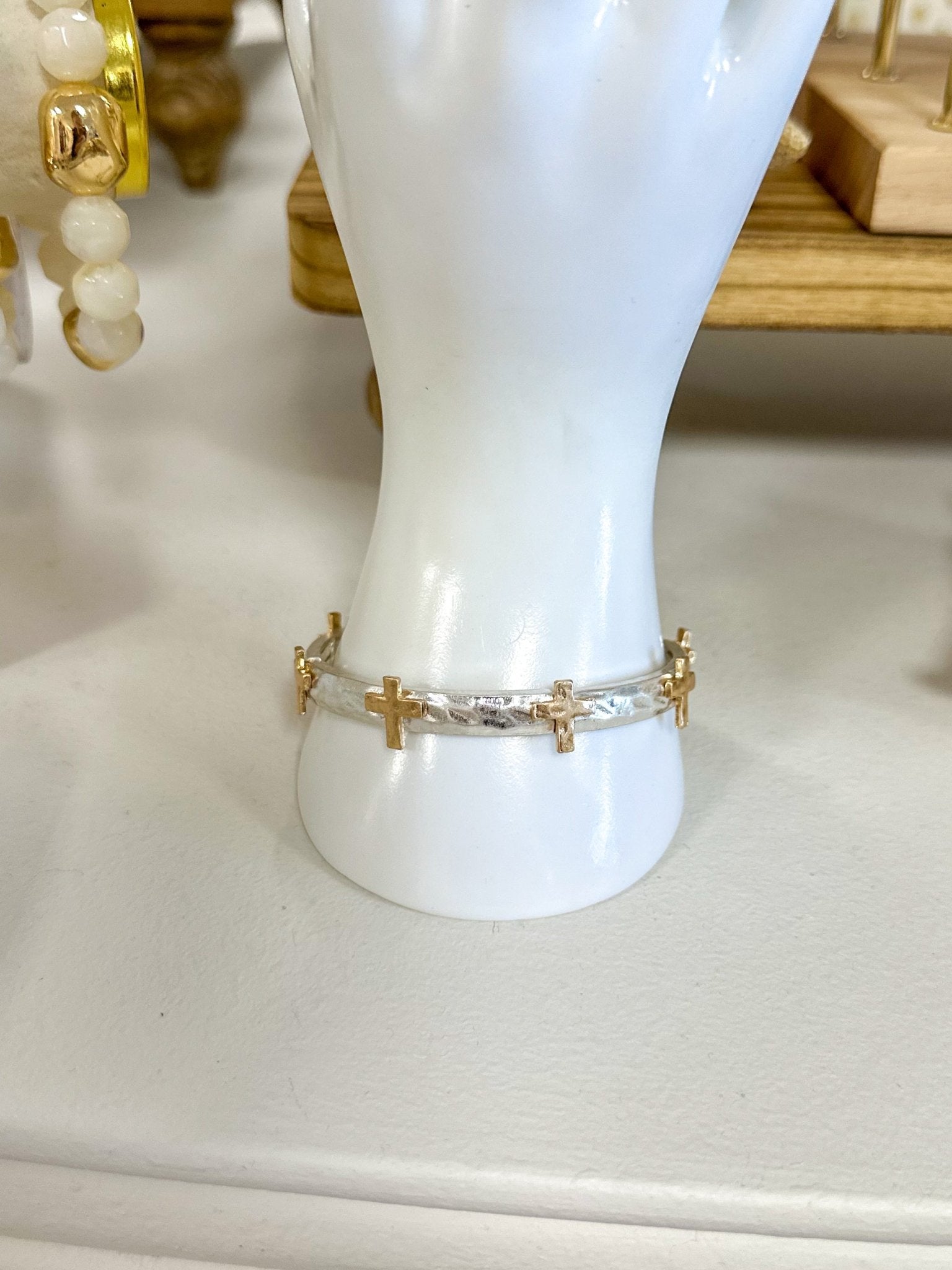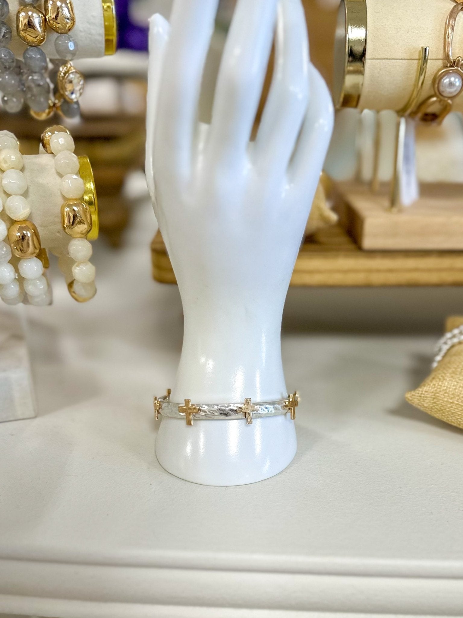 Silver W/ Gold Faith & Fashion Cross Stretch Bracelet