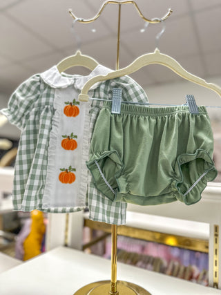 Fall Halloween & Thanksgiving Applique Plaid Girls Bloomers Romper Set