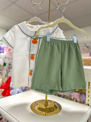 Jon Jon- Fall Thanksgiving Chicken Smock Embroidered Green Boys Jon Jon