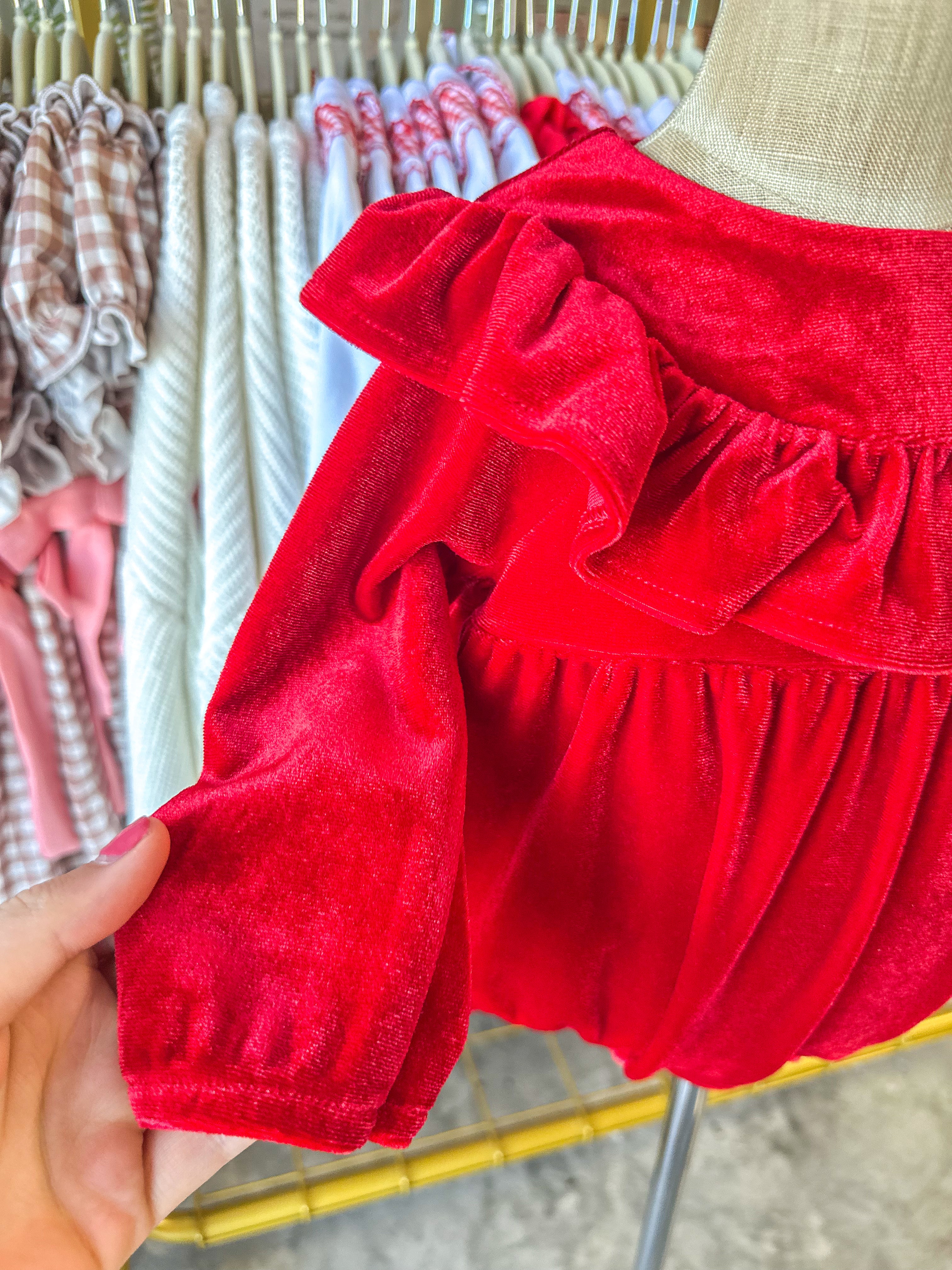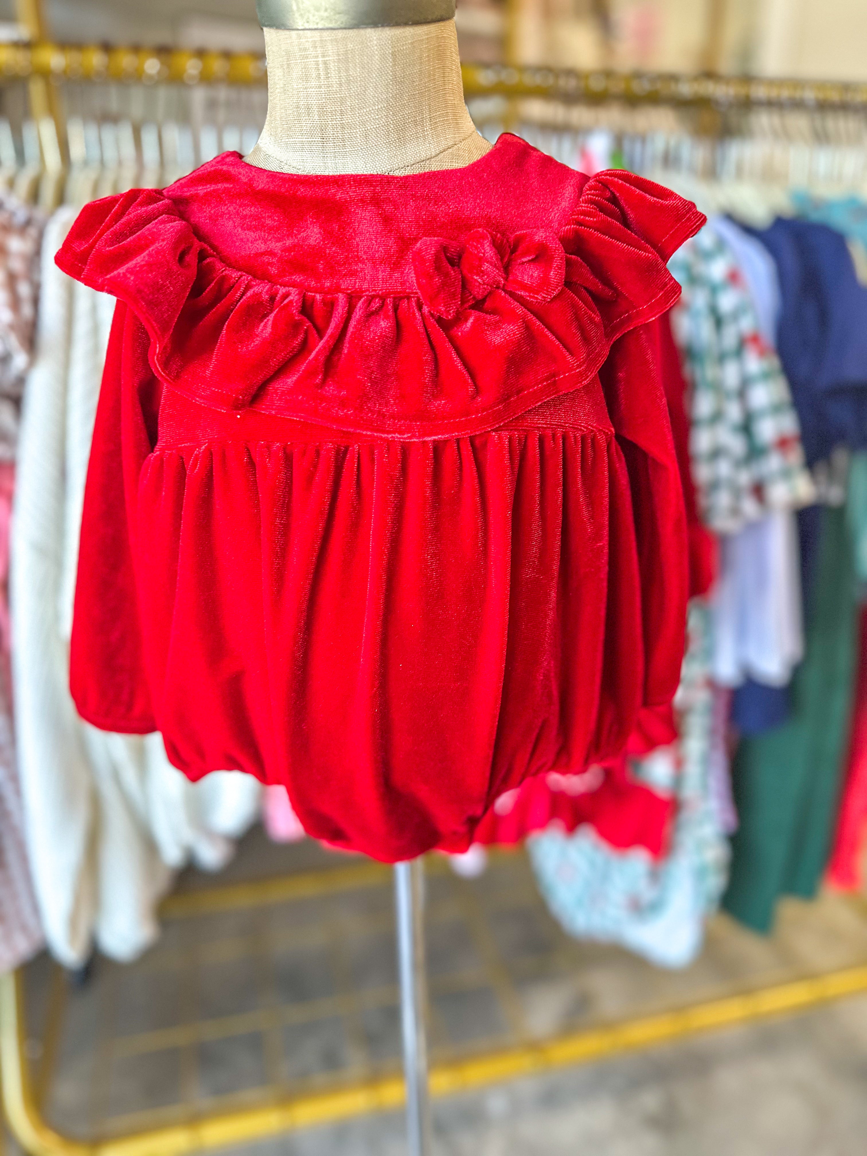 We LOVE velvet at OMG! This red velvet bubble would look so good on your little girl!