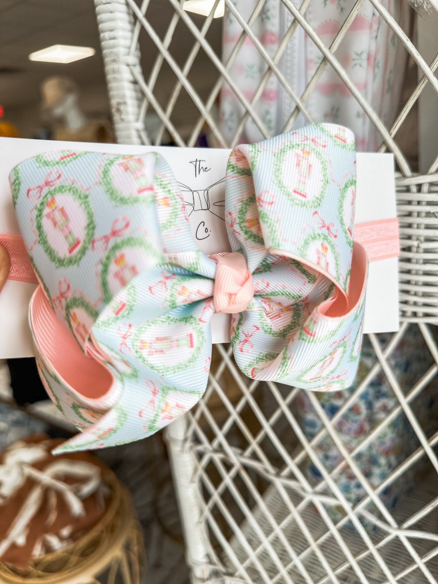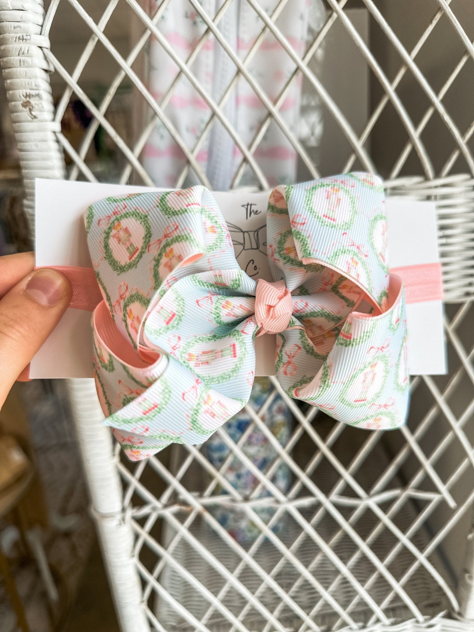 • A festive bow with a soft, pretty palette