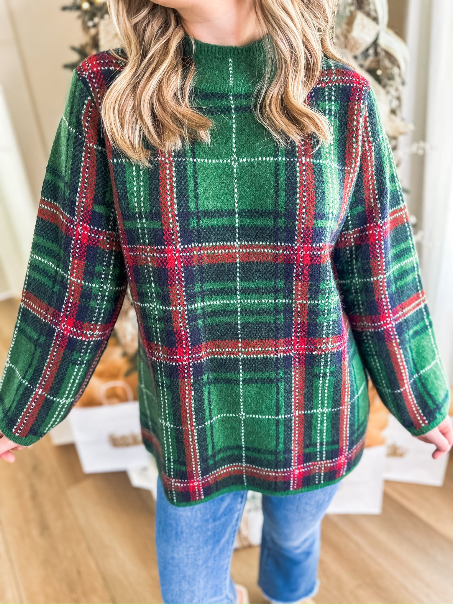 Nothing says festive quite like a classic plaid. This cozy sweater is perfect for holiday markets, family photos, or casual gatherings, offering both comfort and timeless seasonal style.