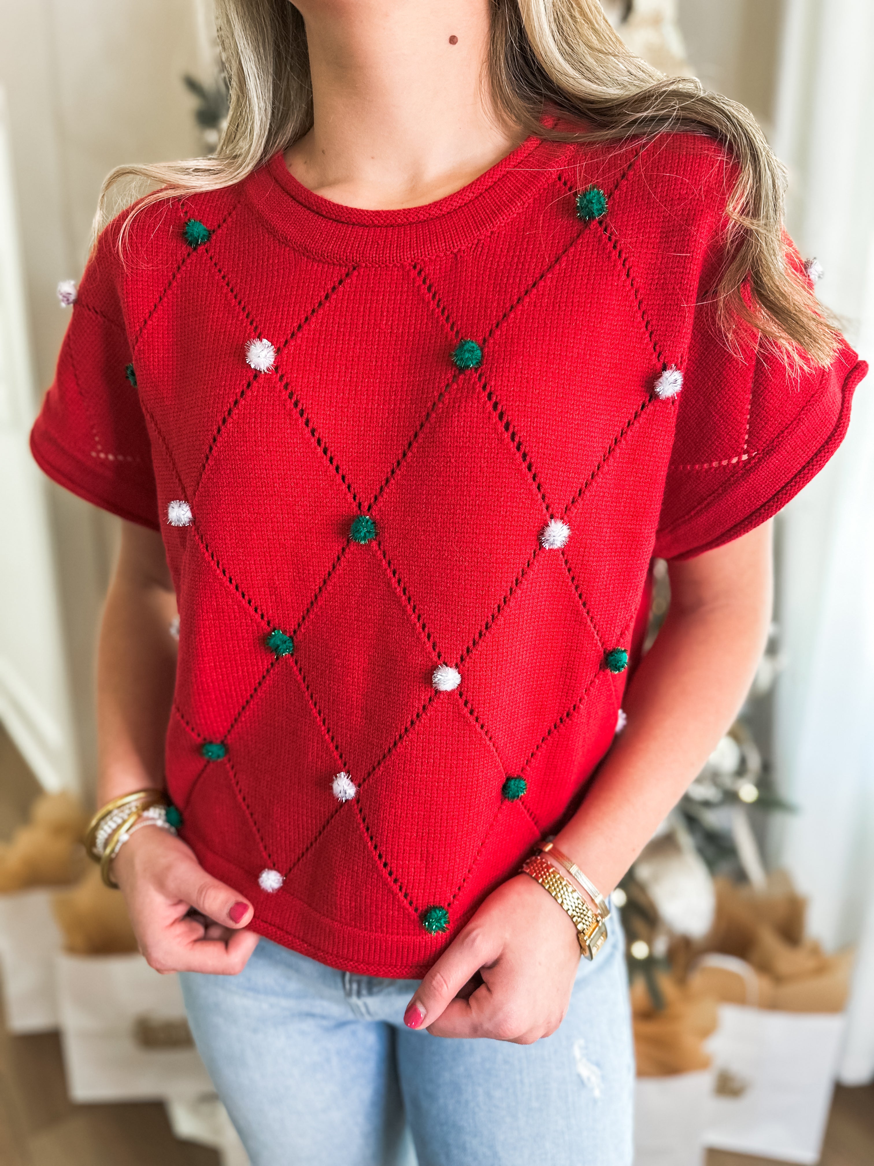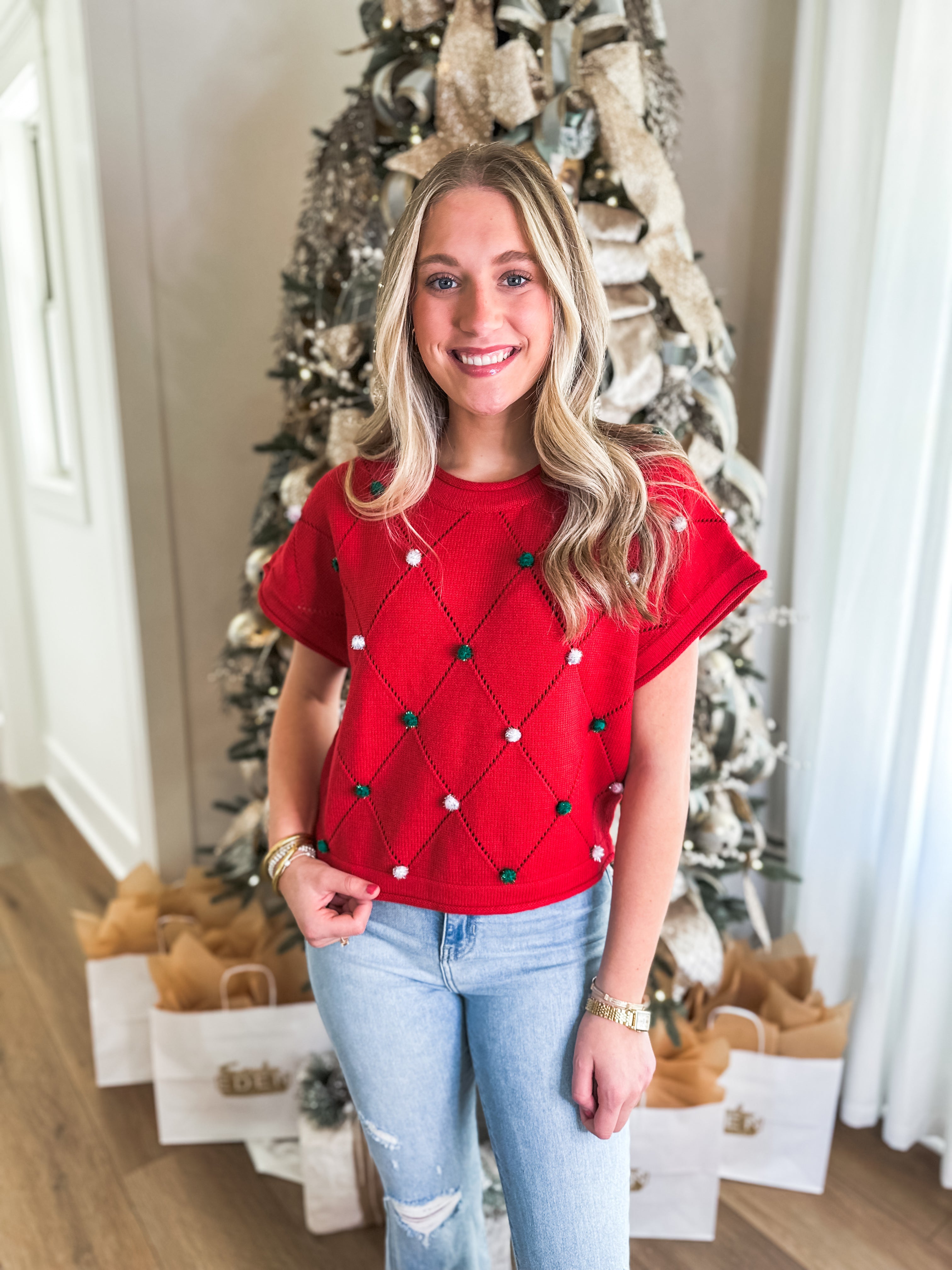Festive, fun, and oh-so-charming — this red holiday vest is the perfect layering piece for your seasonal looks!