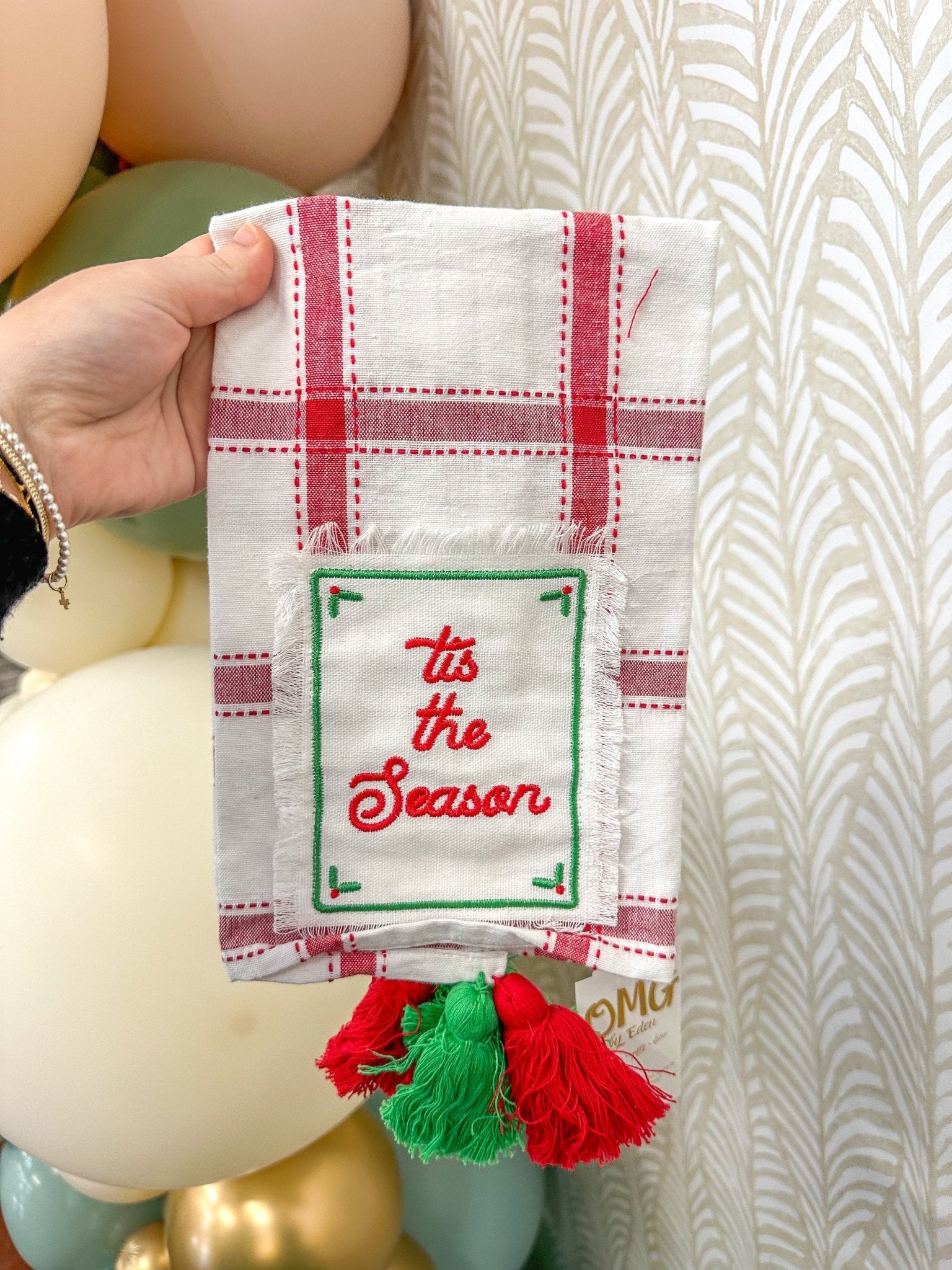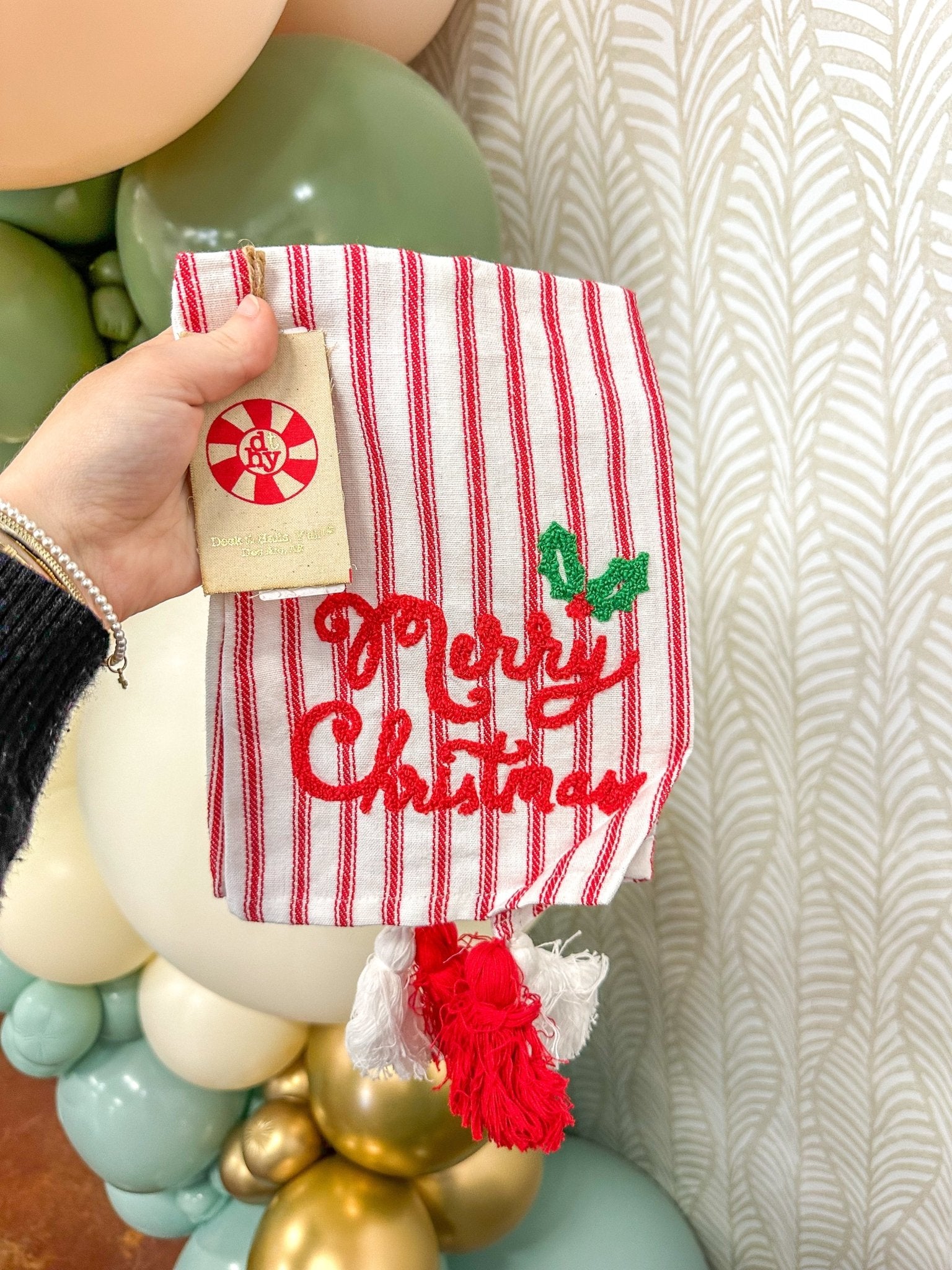 Christmas Ticking Tea Towel- This tea towel is such a simple way to spice up your home for the holidays!