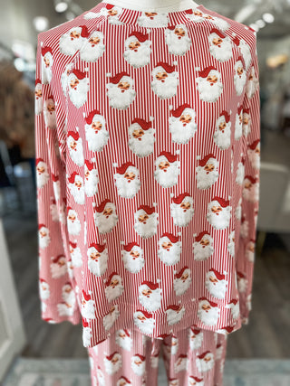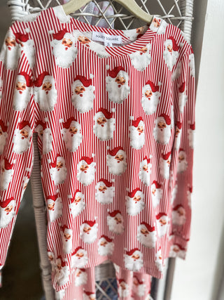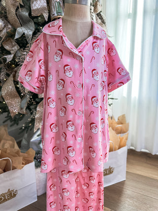 Holiday Bow Print Christmas Pajama Set - Girls Cozy Red Trim Sleepwear