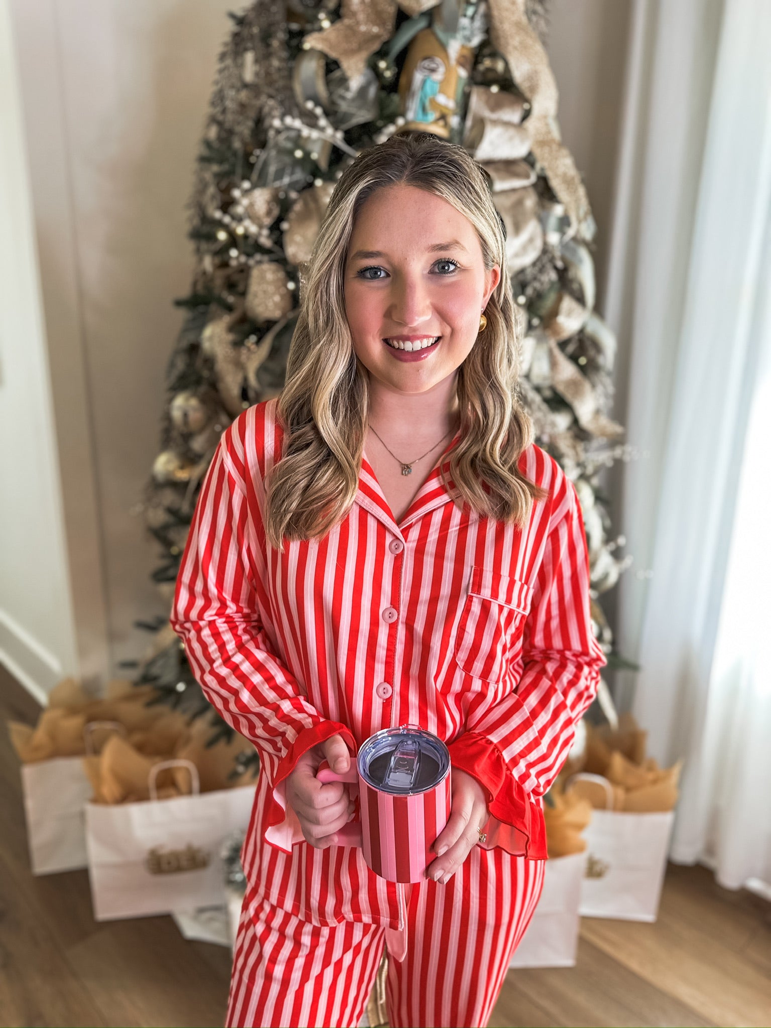 The Candy Cane Stripe Satin PJ Set adds instant holiday cheer with its classic red-and-white stripes and silky-smooth feel. It’s festive, fun, and perfect for cozy Christmas mornings or lounging fireside with cocoa.