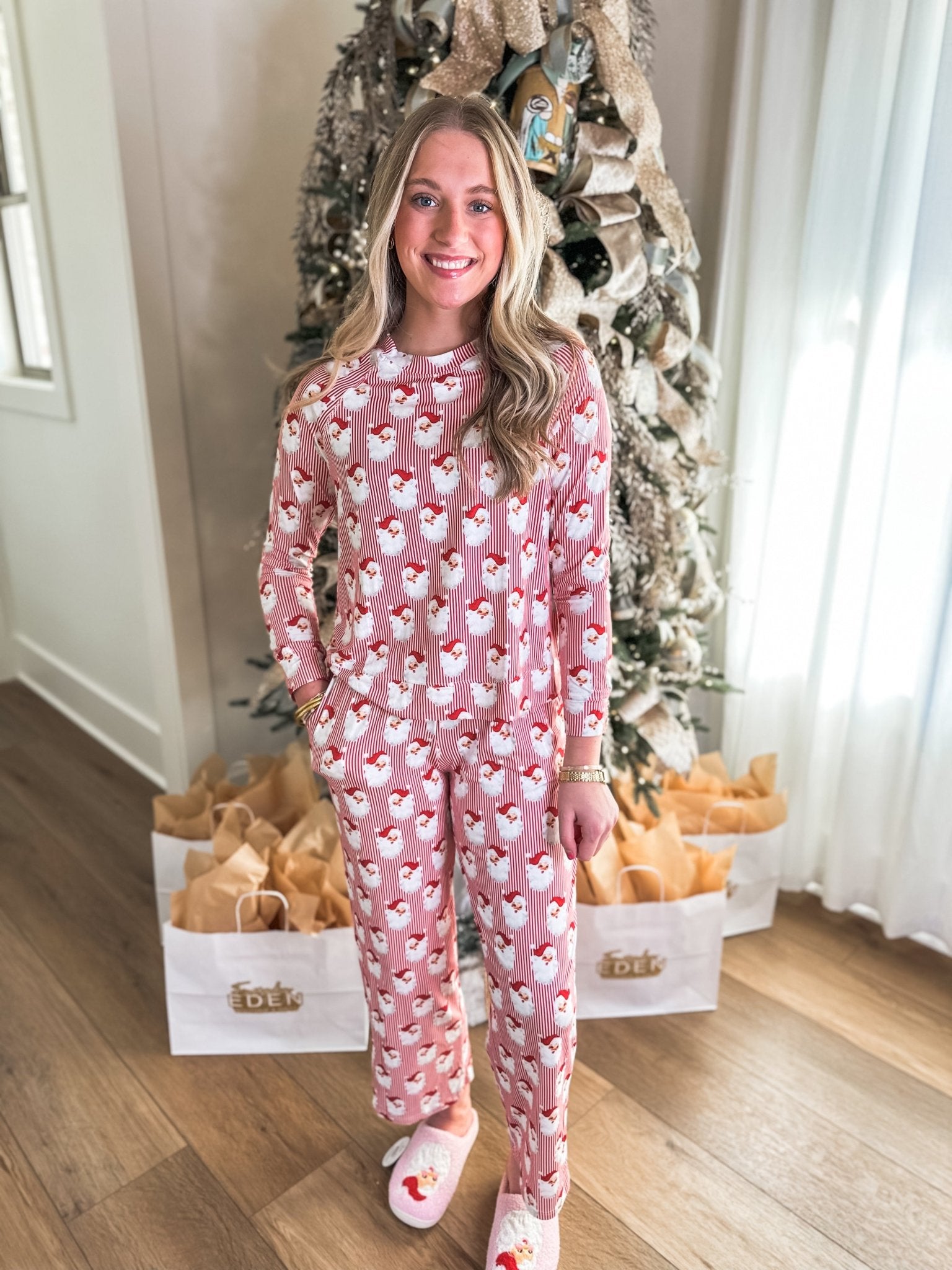 Bring a little holiday cheer to bedtime with this cozy and festive PJ set. Perfect for lounging at home, Christmas morning photos, or gifting to someone special.
